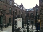 After riding around the block, I discovered that the building is best viewed from across the canal on the back side (on the street Mauritskade). But off of Sarphatistraat, sometimes a gate is open so that you can get a closer look at the building.