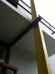 2. The interior/ exterior beam: On the first floor in the study room, there’s a white beam that exists both inside and outside the building. Rietveld considered every detail in his vision for the building- a perfect example. The tube lamp in this photo- RAD.