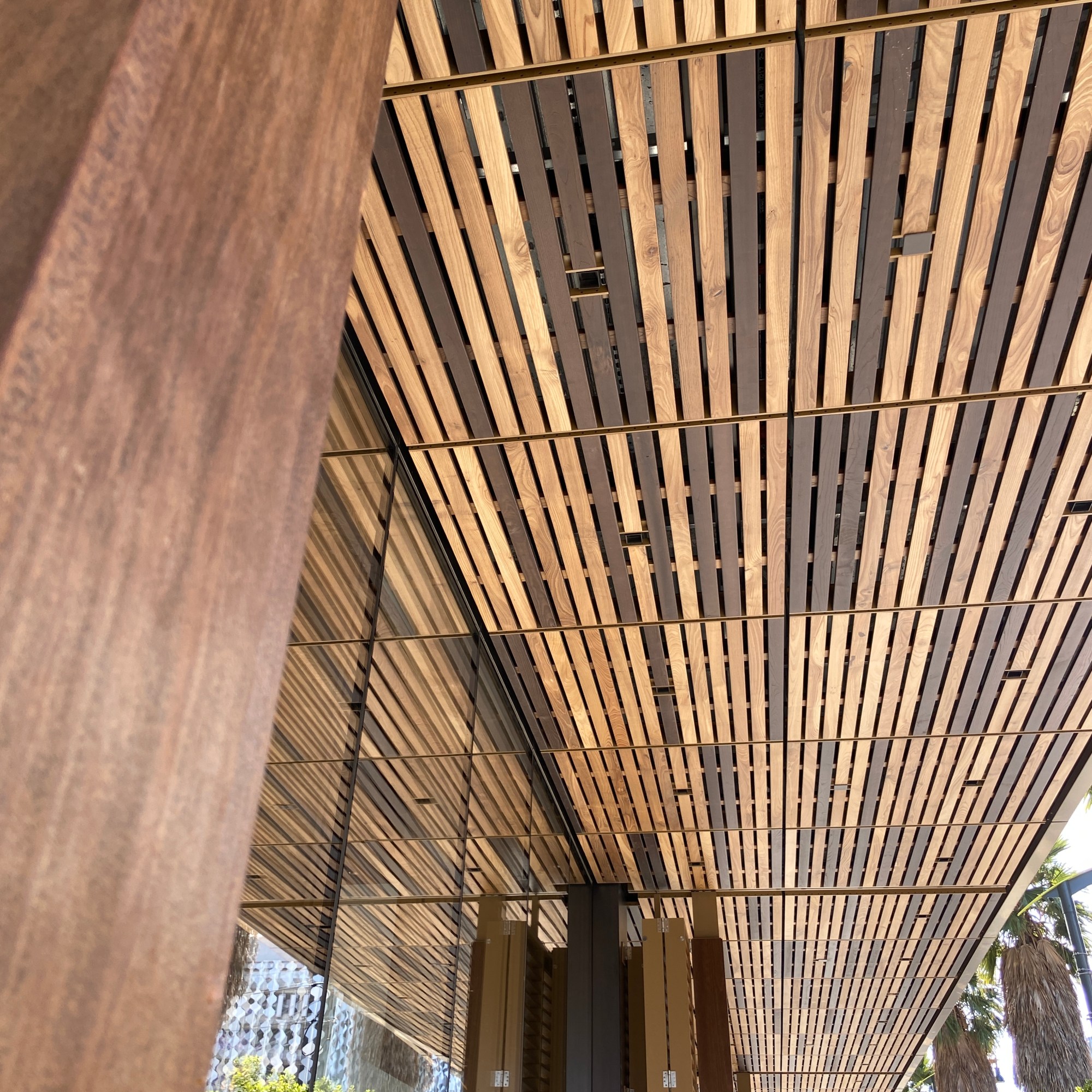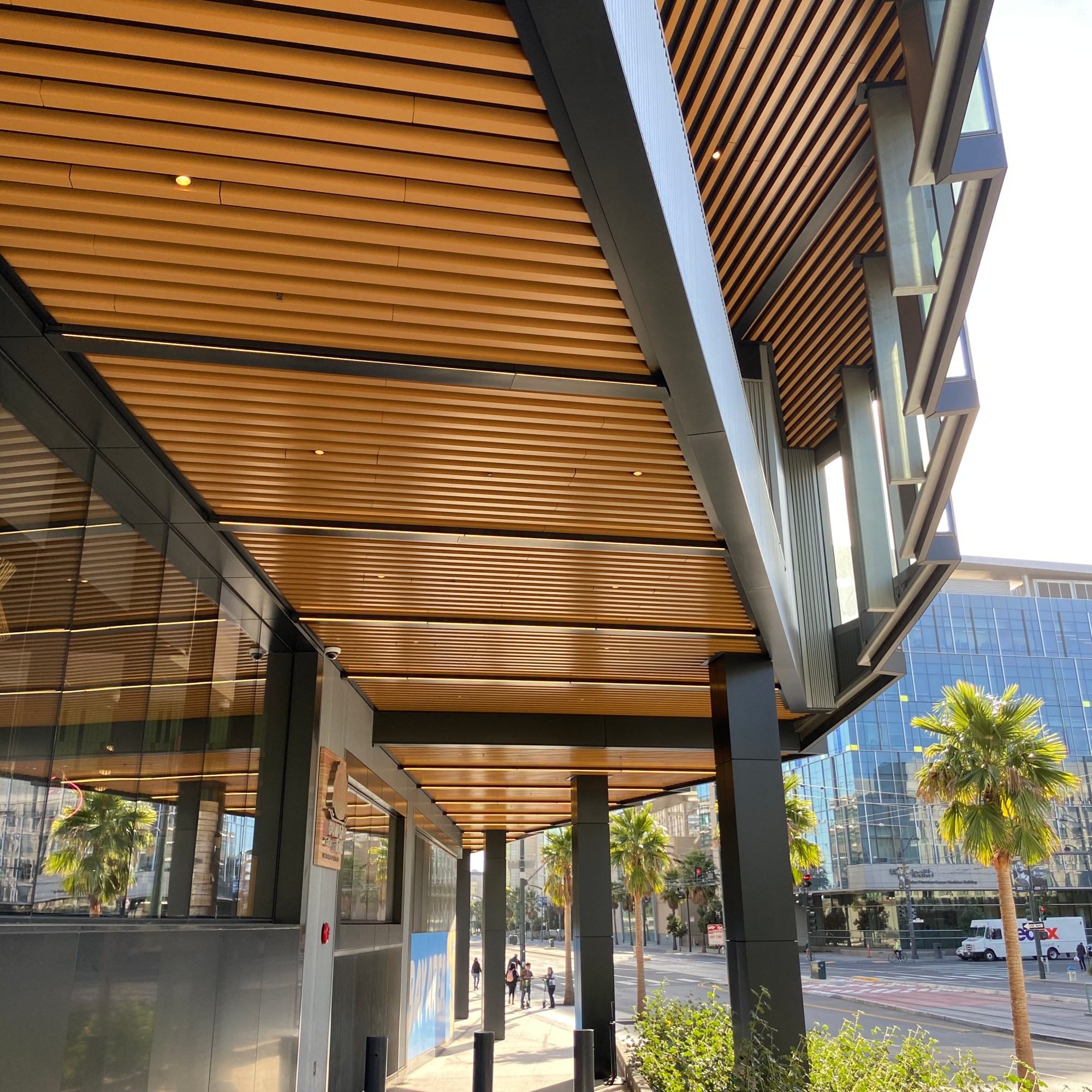 On the exterior there were a few moments that caught my eye. The “underbelly” textures- quite a bit of attention to detail on the materials for the underside of the overhangs, of which there were quite a few. I hope for those riders waiting for their Ubers, they take a minute to look up from their phones to appreciate what’s hanging above them.