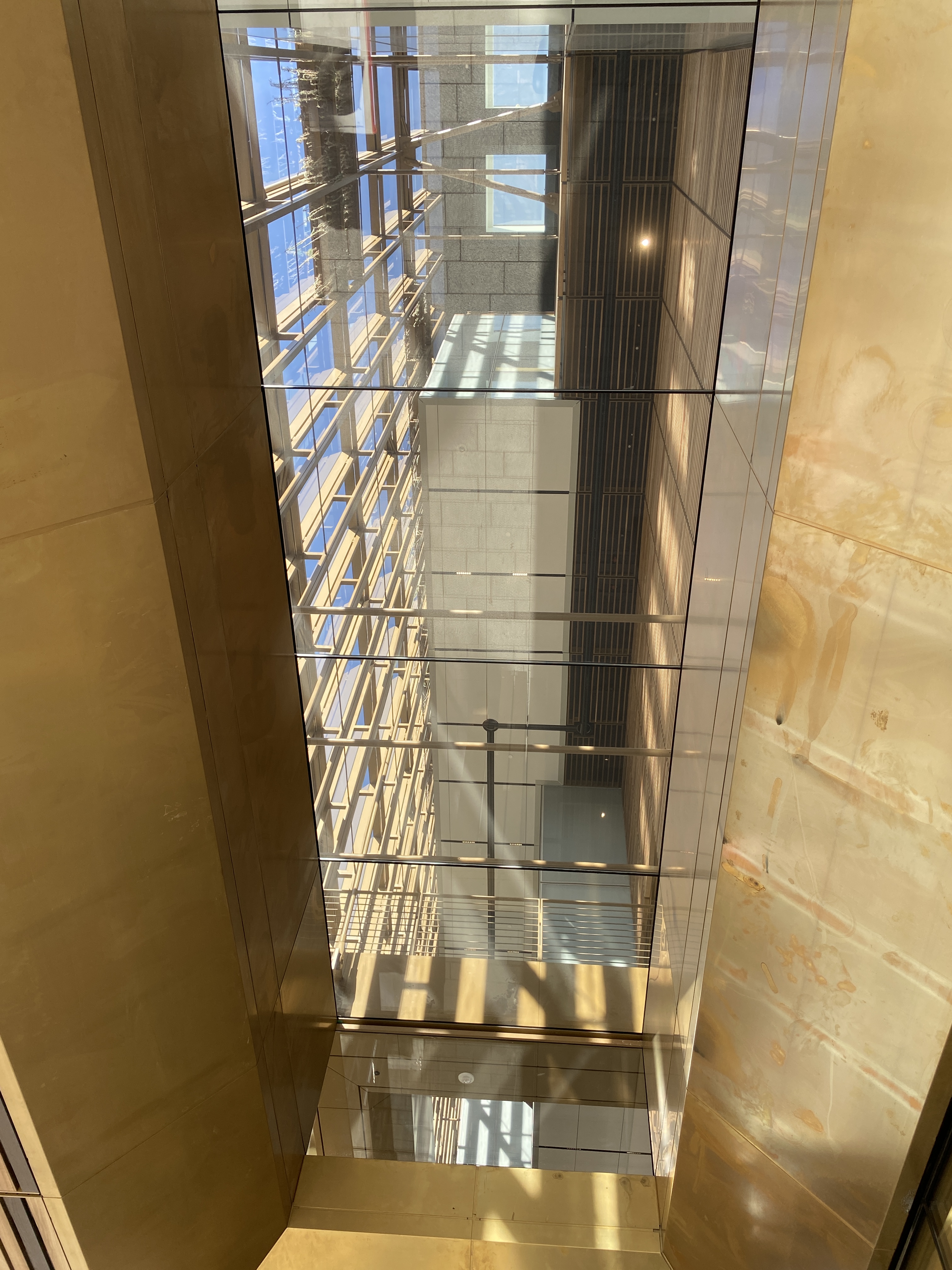 “Just look up” should be my motto for these buildings. I was delighted when I was able to sneak a peak into the construction of the outer wall juxtaposition with the interior structures. I feel as if no corner was left unturned. Makes me even more intrigued to see what the working functioning spaces of this are.