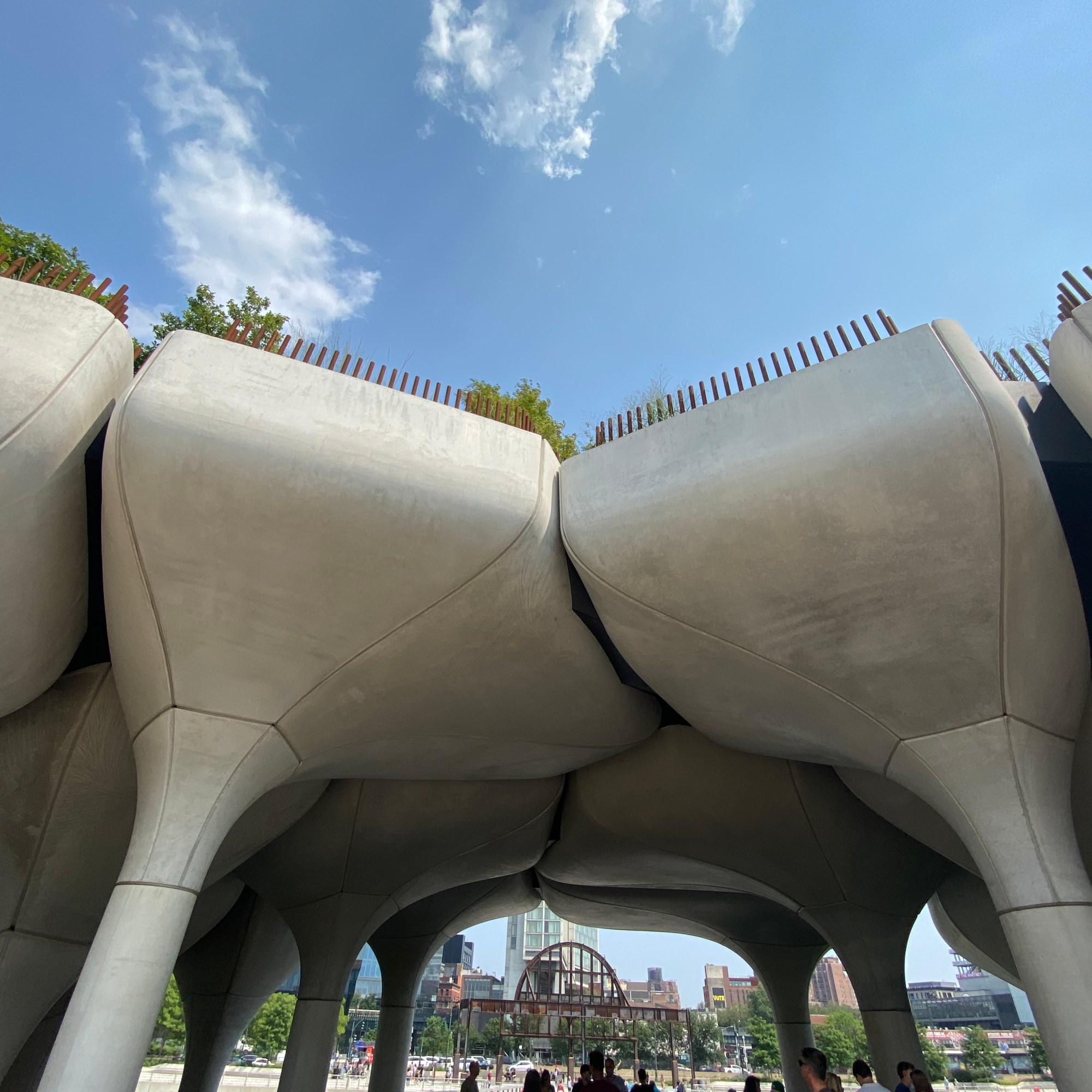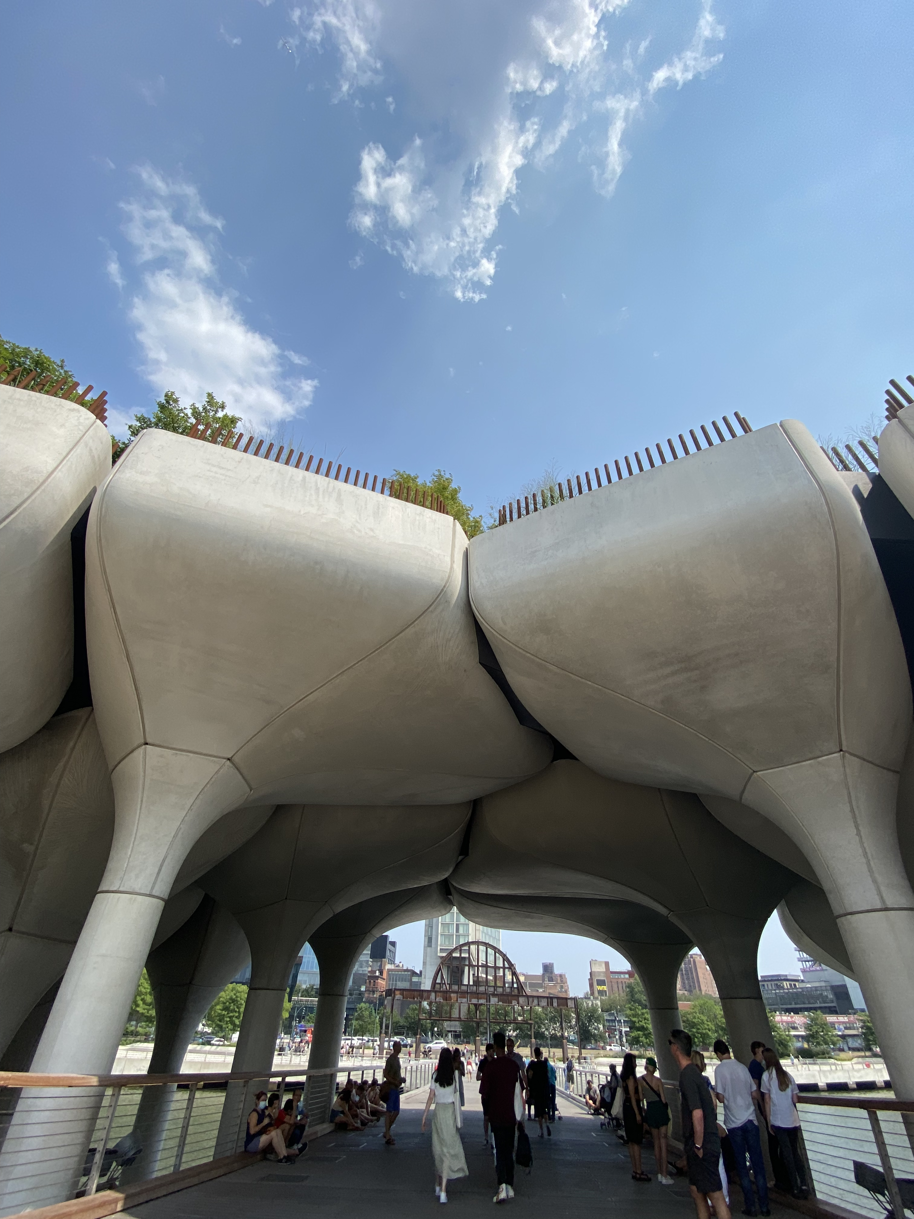So many lovely notes on Little island. There’s a breeze! (The temperatures were 80s and humid – proper East Coast summer weather – for our day biking around the city.) It’s at an entry point to the High Line! Its free!