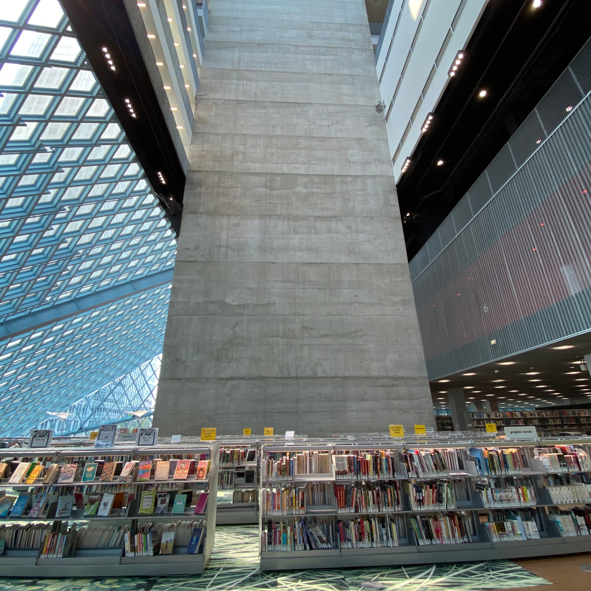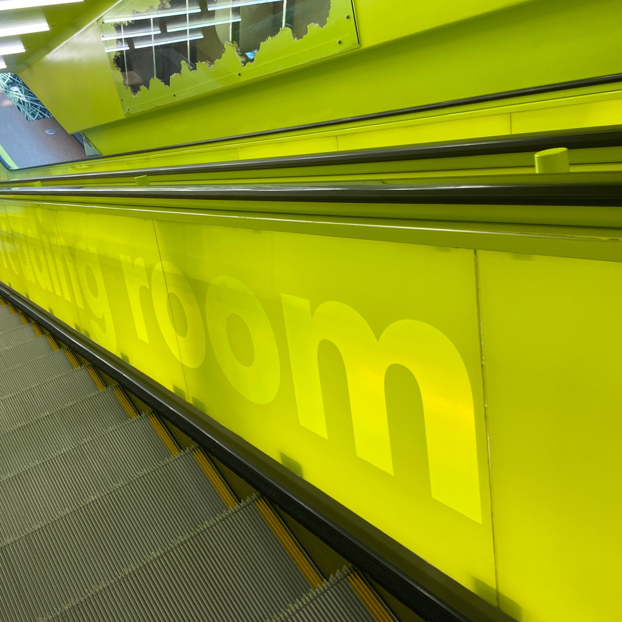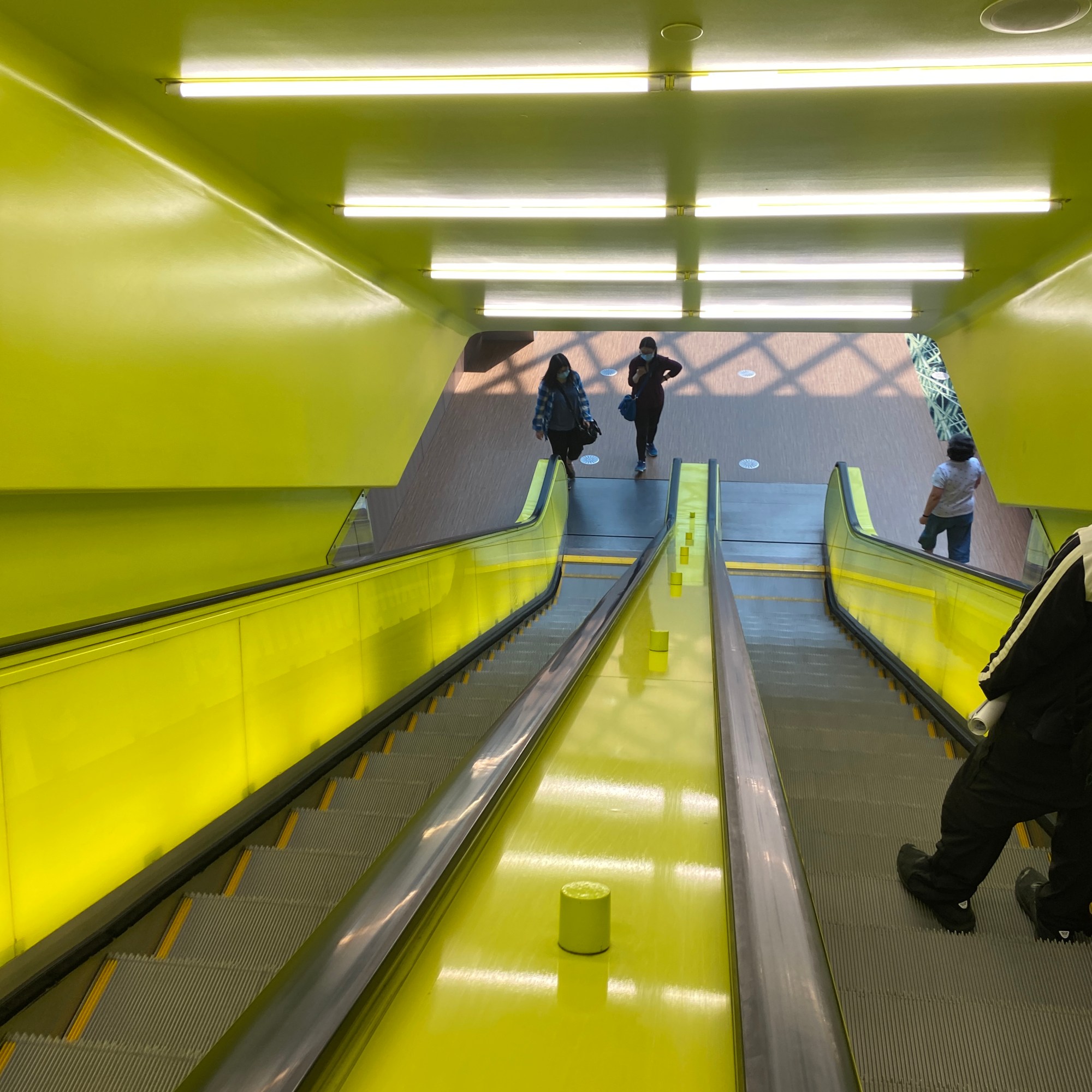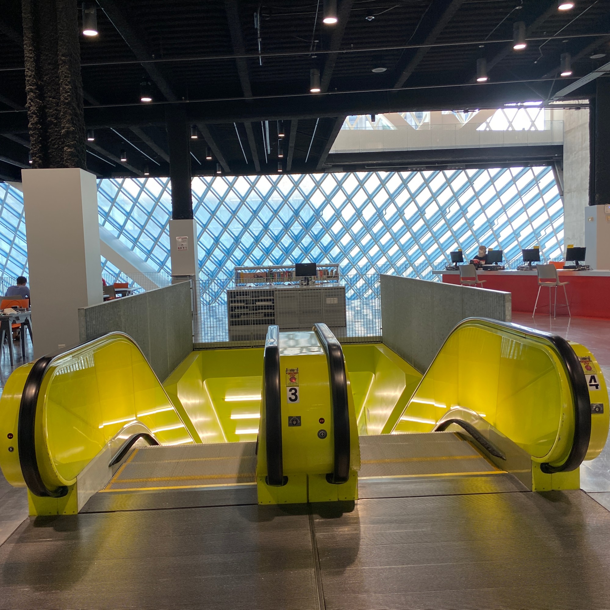 Also on brand was the use of bold color. The large swatches of color were scaled to match with the space. I’d be curious to see the palette and maybe (but probably not) read up if there was any significance. This library does in many ways remind me of another favorite library, but building in general, Openbare Bibliotheek. The escalators in particular have a very similar aesthetic and feeling.