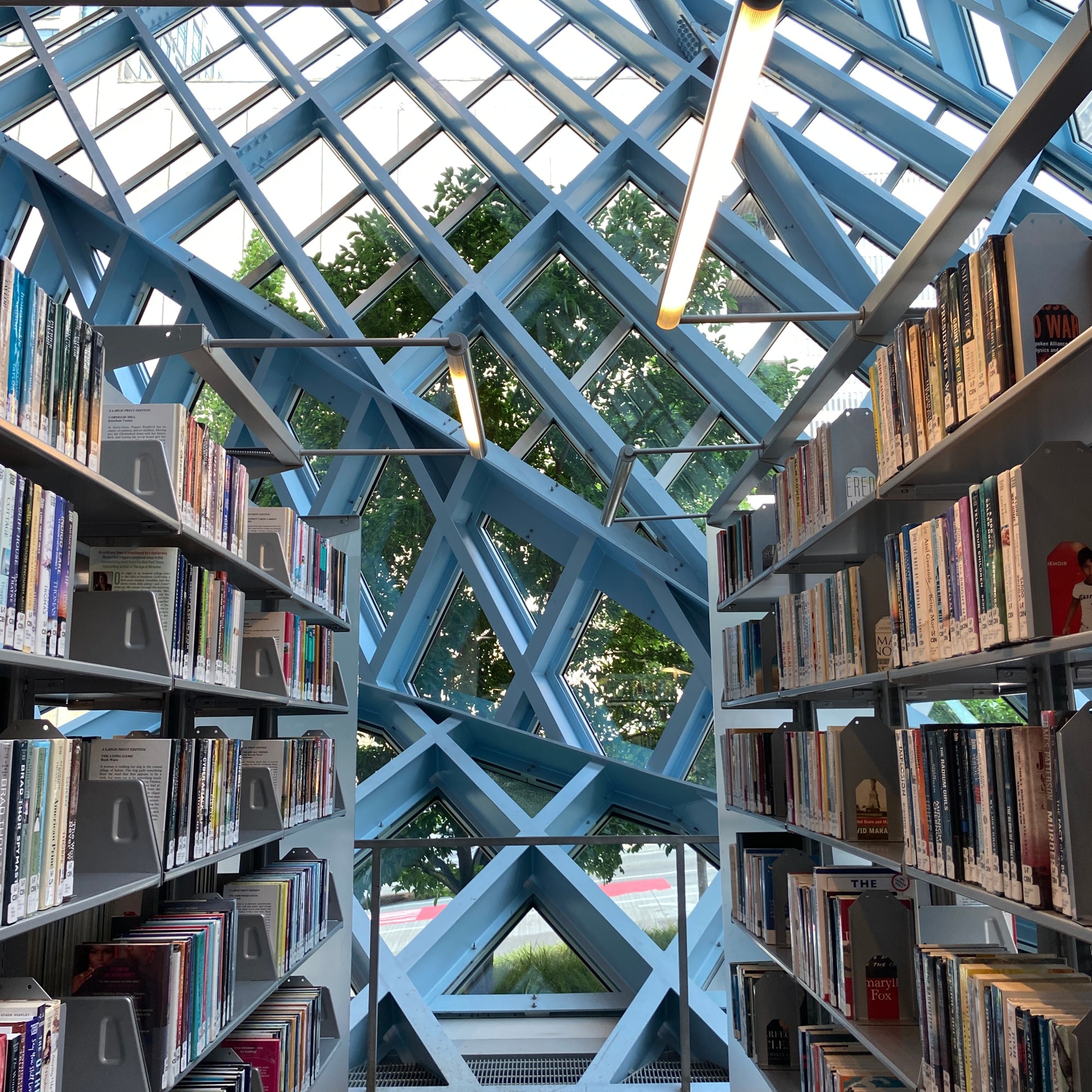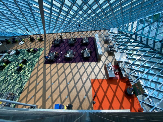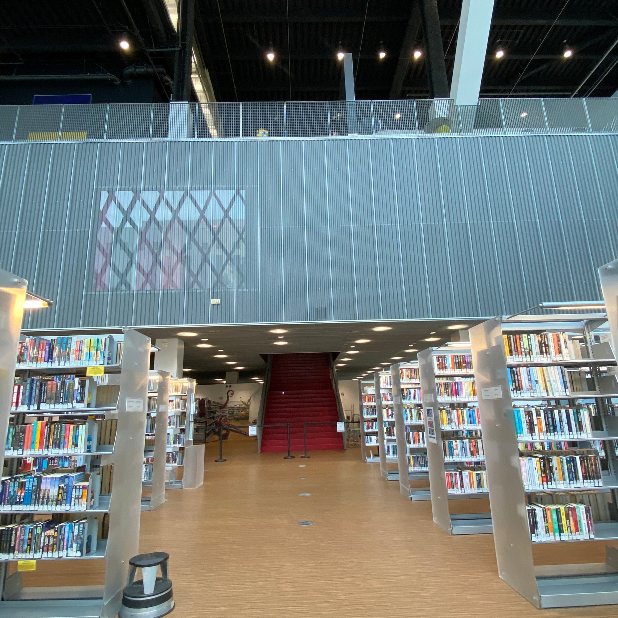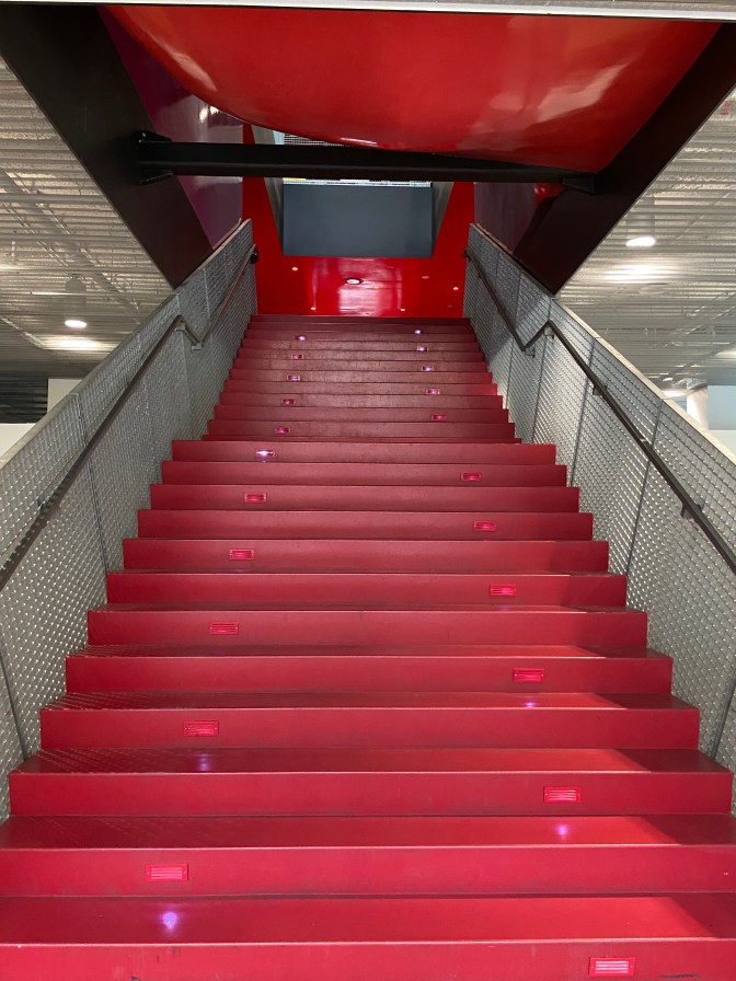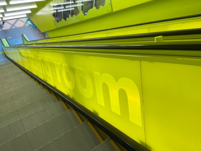 Also on brand was the use of bold color. The large swatches of color were scaled to match with the space. I’d be curious to see the palette and maybe (but probably not) read up if there was any significance. This library does in many ways remind me of another favorite library, but building in general, Openbare Bibliotheek. The escalators in particular have a very similar aesthetic and feeling.