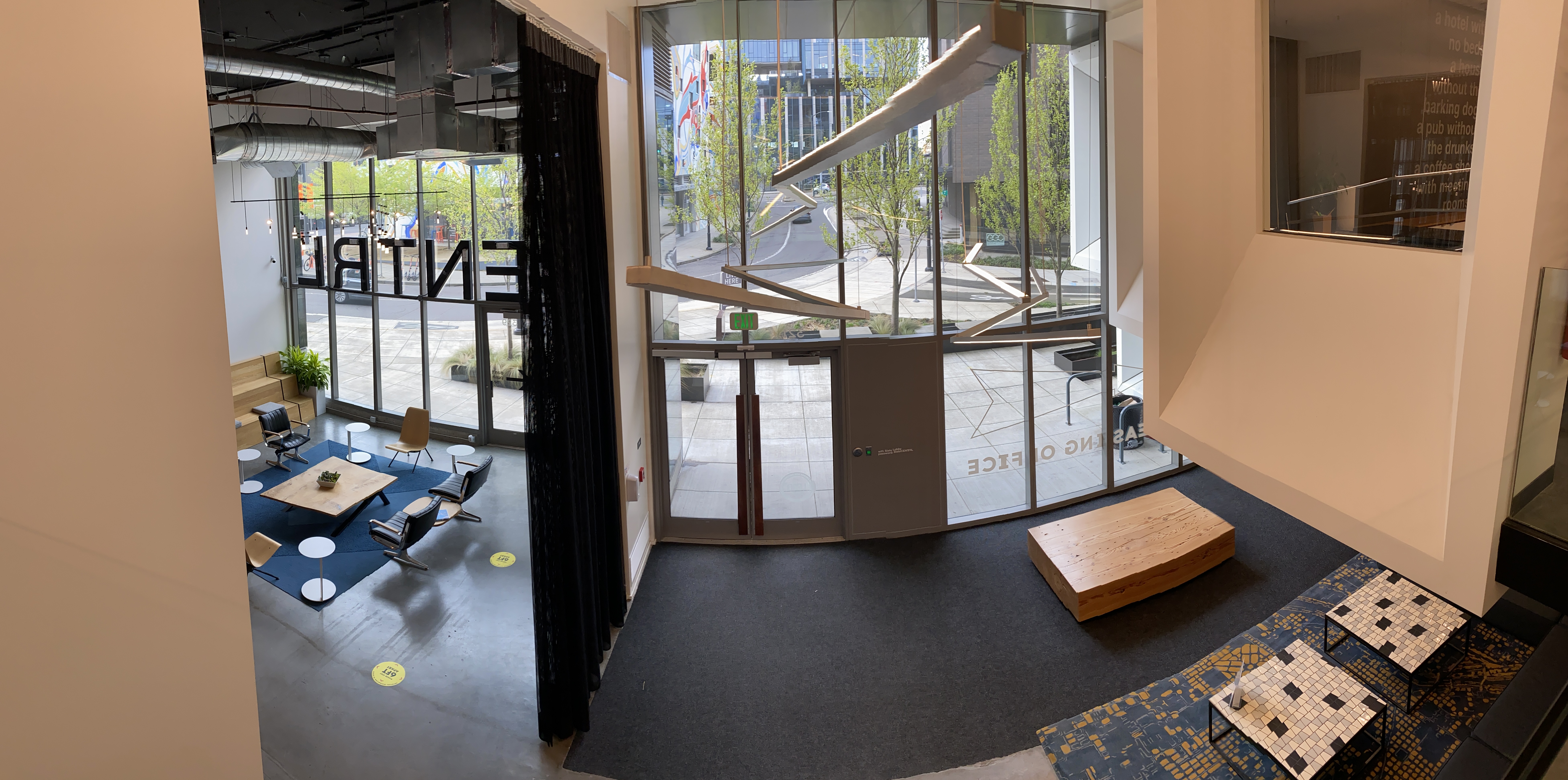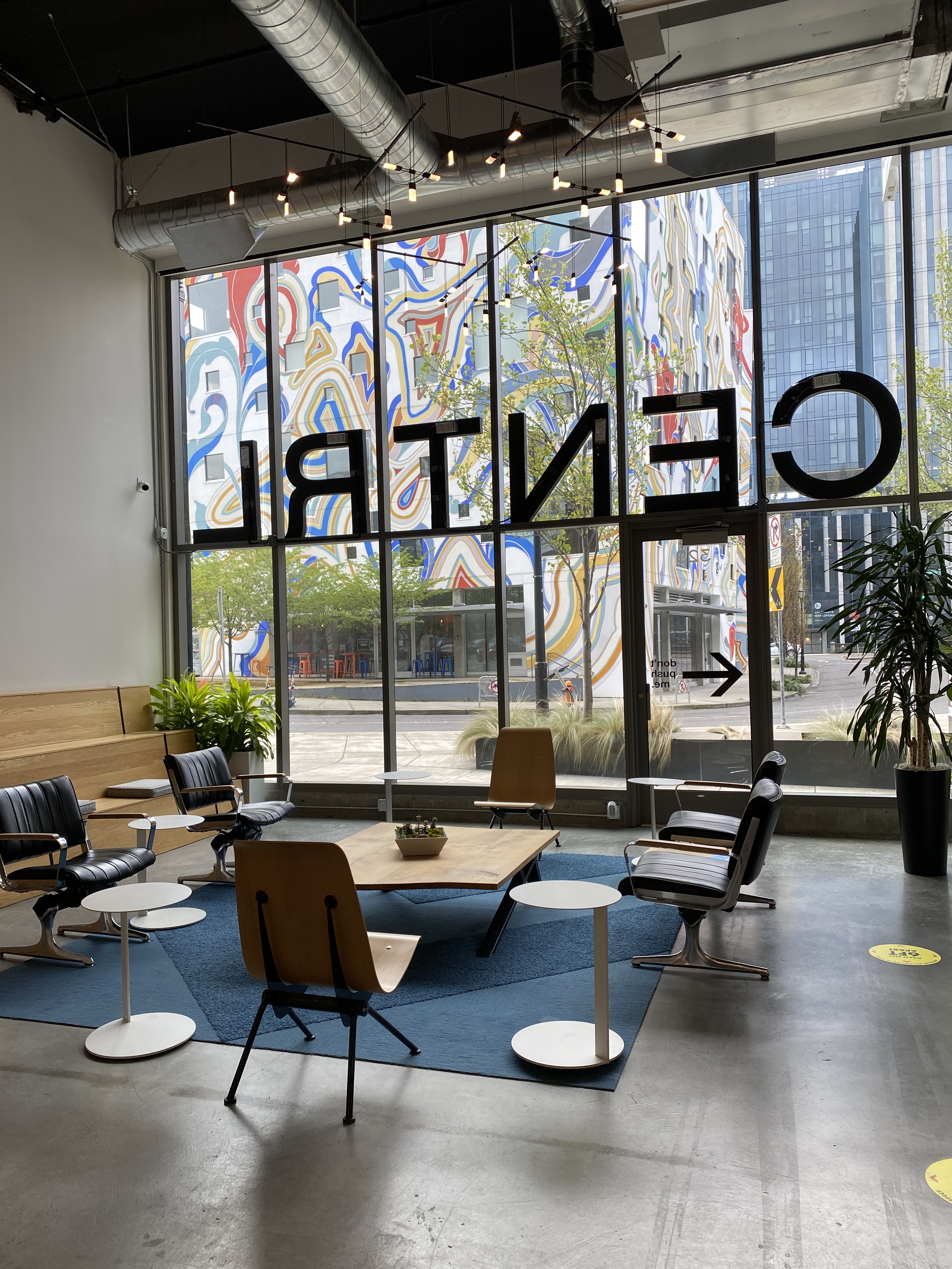 The lobby makes a stunning first impression and one can imagine working quietly from here or on the other end hosting an event here. The upstairs actual work spaces are nothing to write home about and in fact are a bit dingy- not sure I would choose to work from here rather than a well appointed hotel room. If I was doing independent work, rather than being in meetings- I would love to just steal a seat here in the lobby and enjoy the view while typing away on my computer or drawing up some notes.
