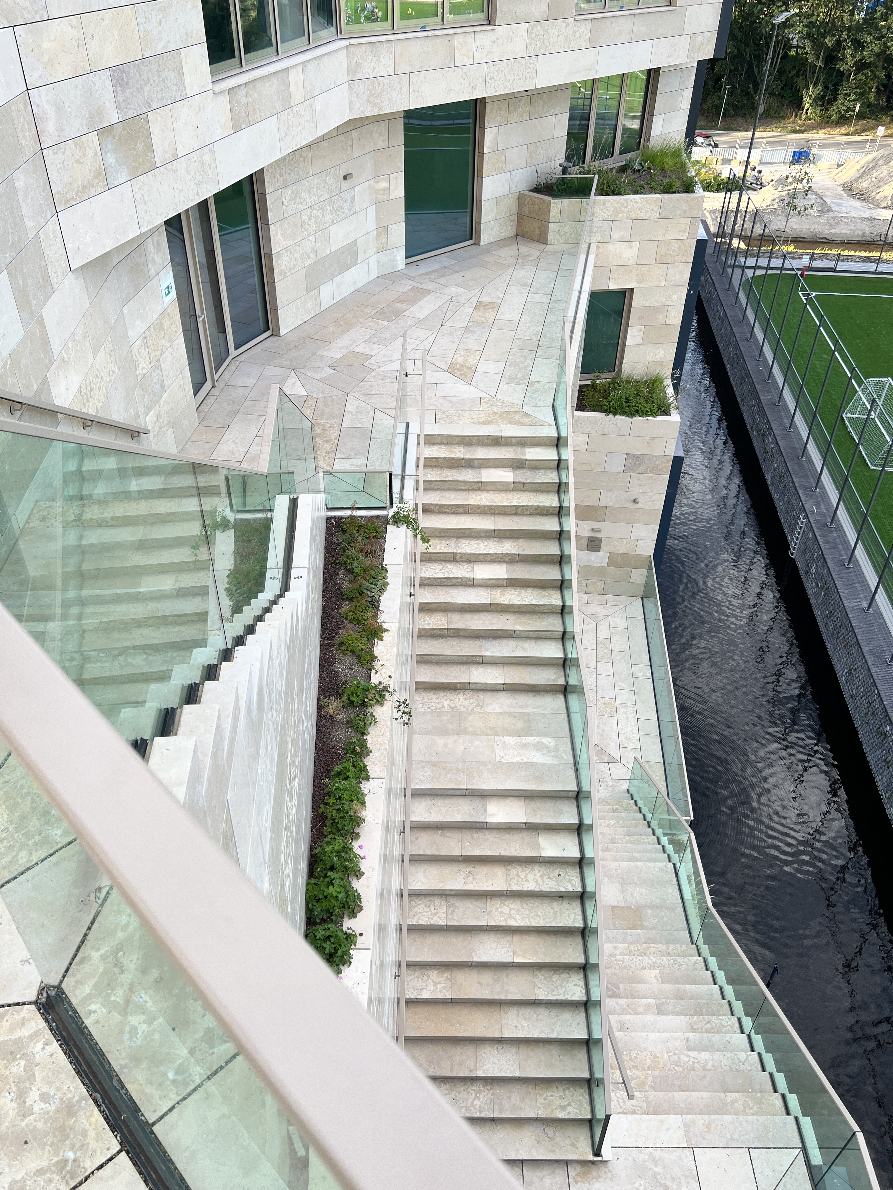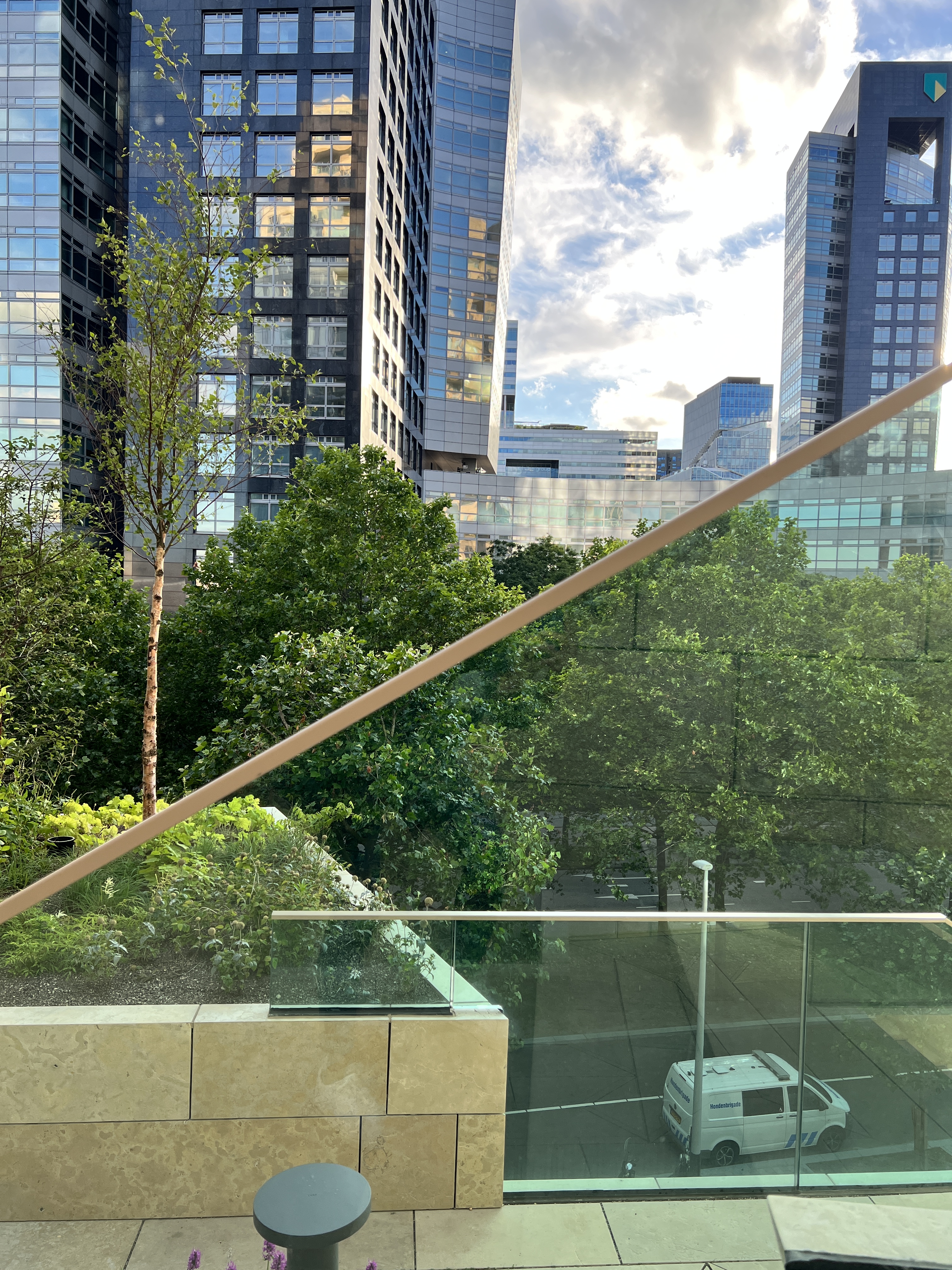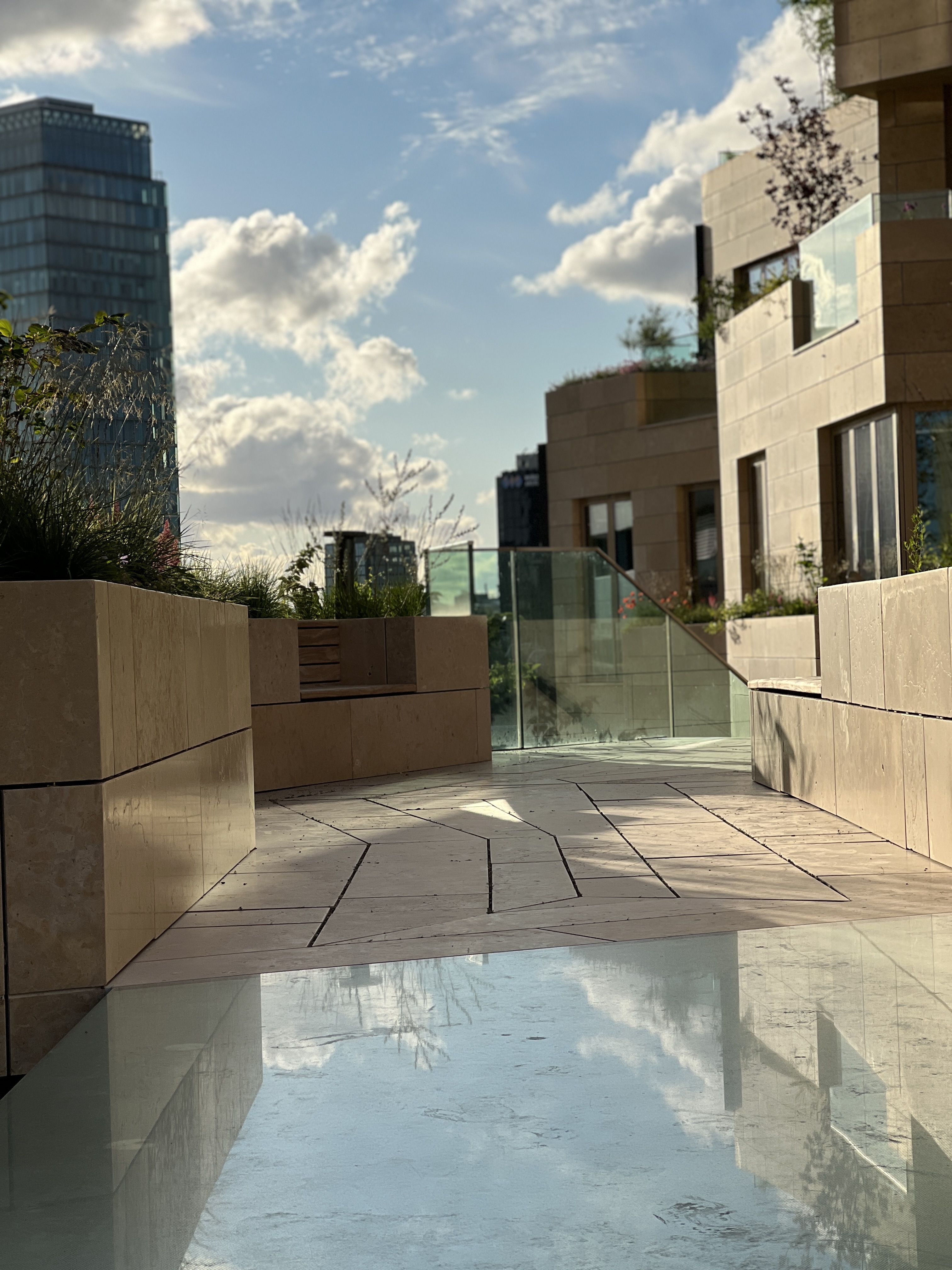 The outdoor space of Valley is phenomenal- the benches, the pathways, the landscaping and even the roofs of the atriums of the lobby below. The water on purpose? We were taking bets about whether there was a drainage problem. The water does have quite the effect – reminding me of the (currently empty) water spaces at the VDL Research House II. The reflection, expanding the sense of space.