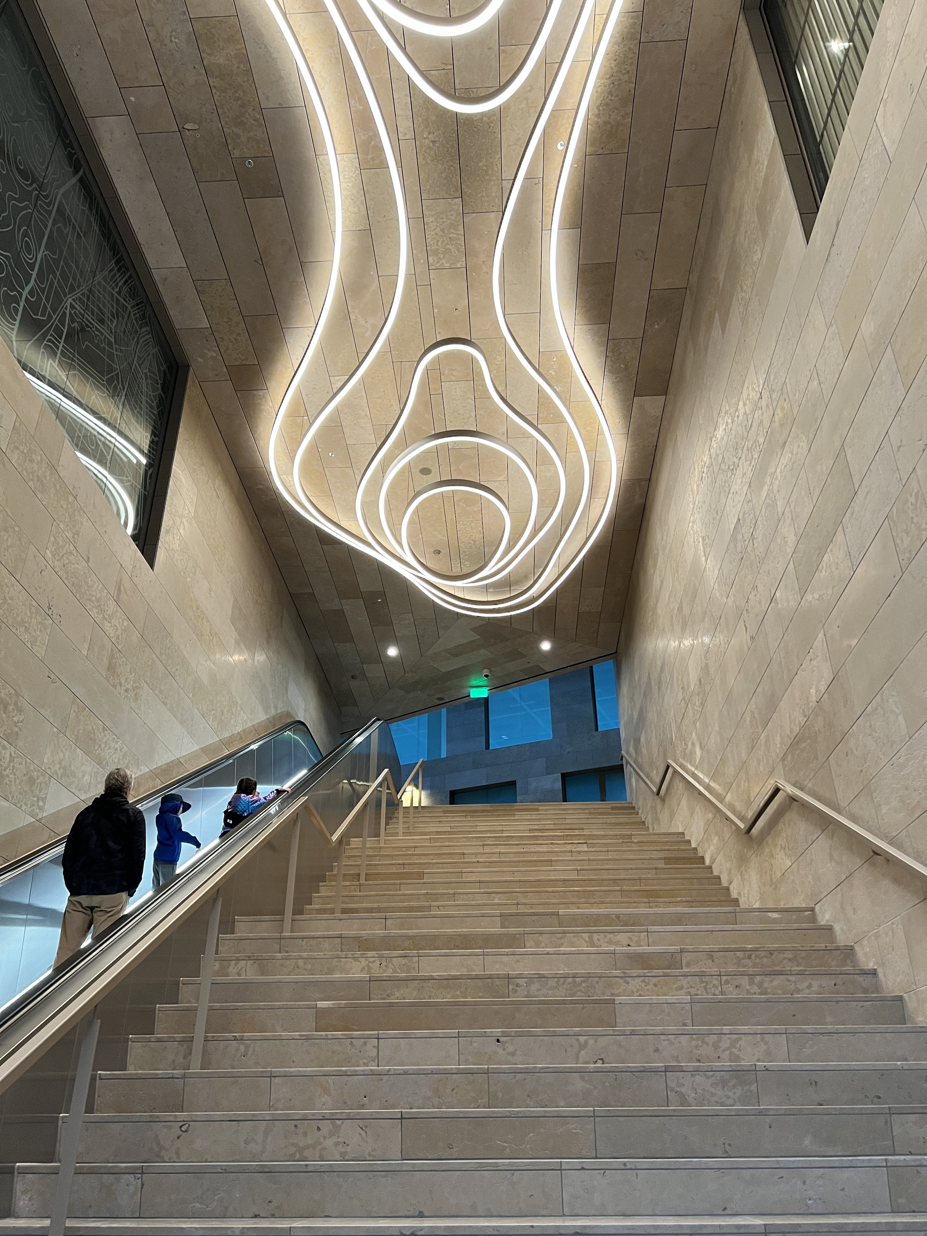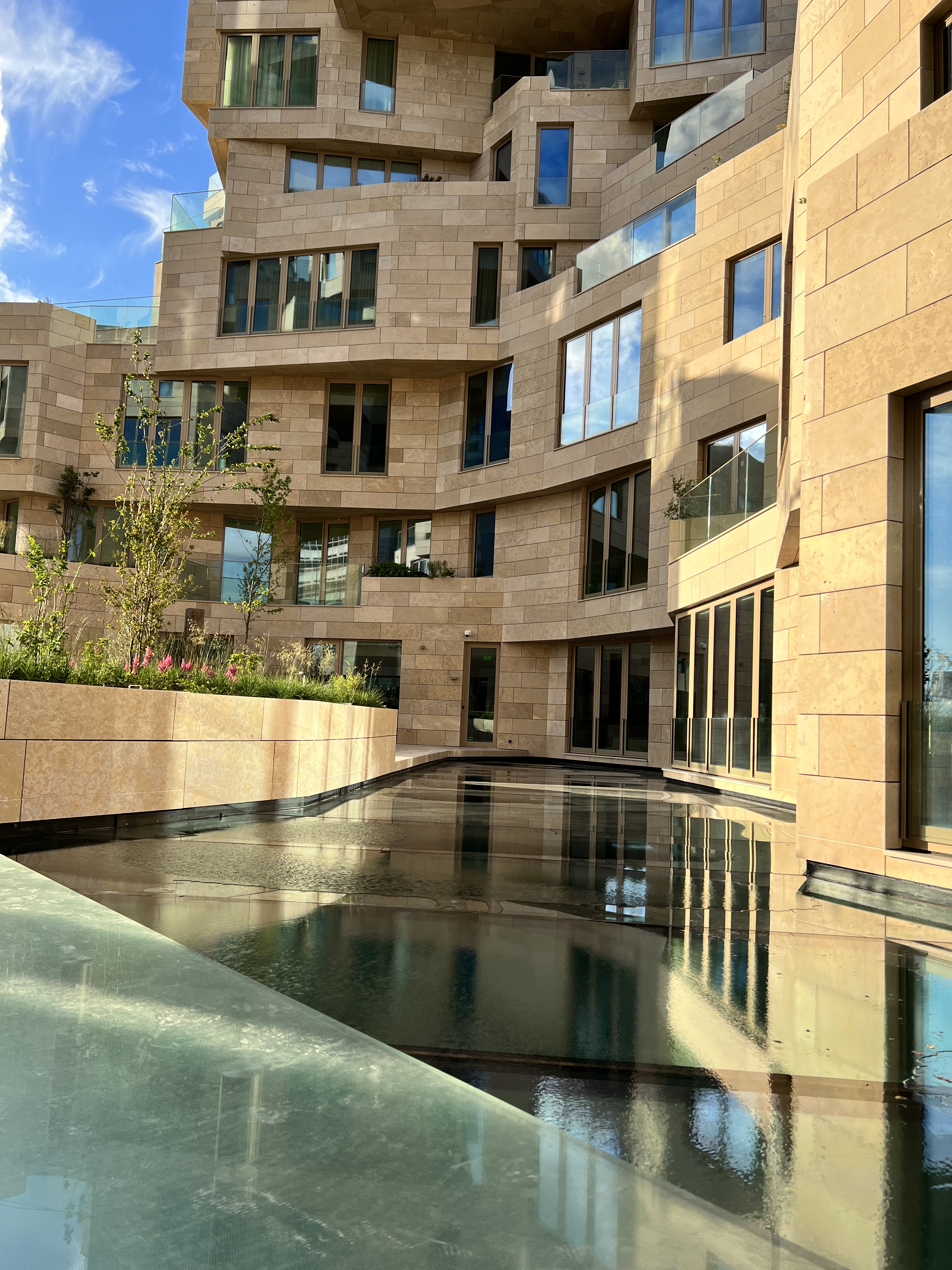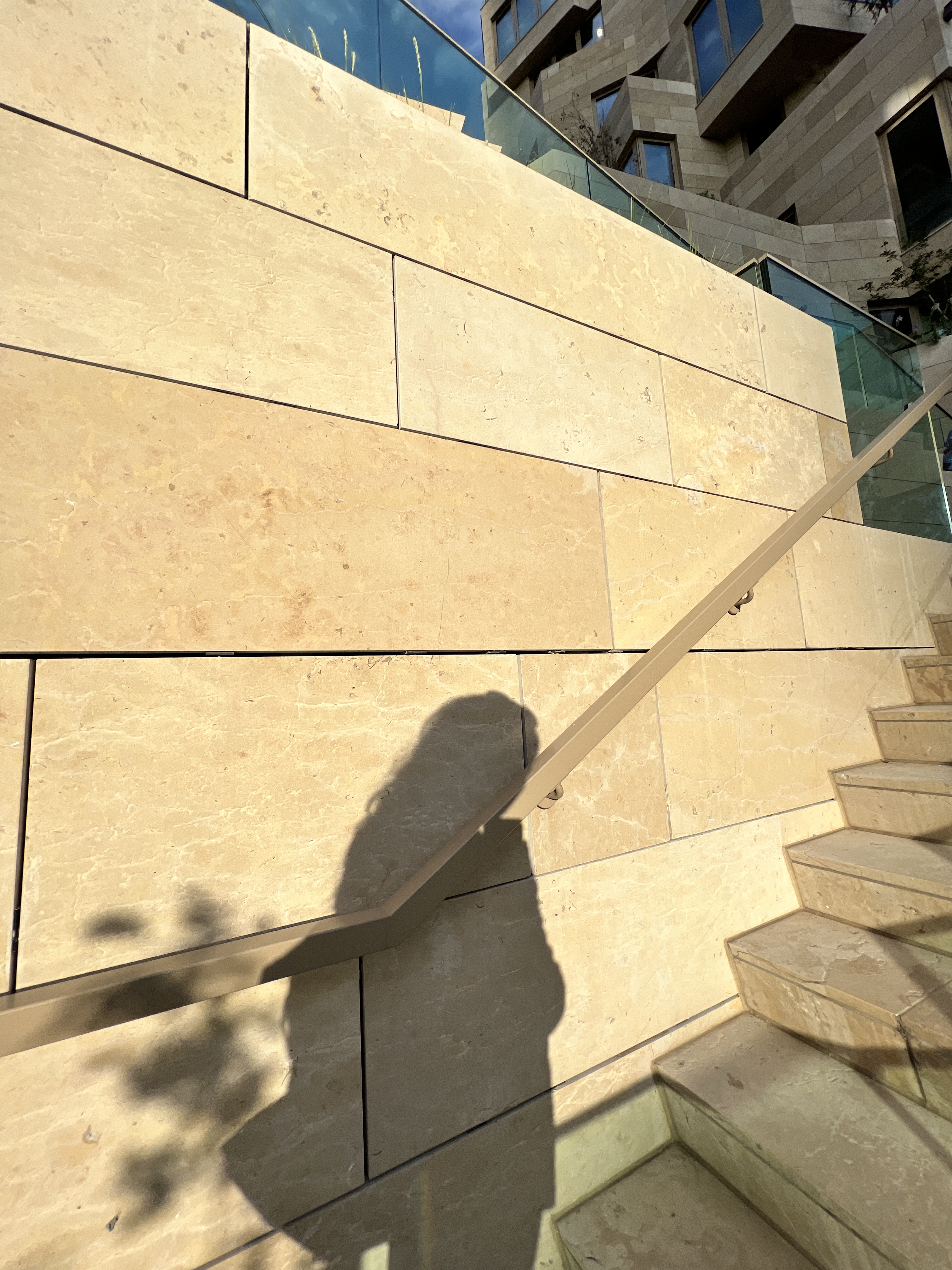Inside the lobby it was so quiet you could hear a pin drop. The metaphor of the valley continued even inside- connecting the inside and other together creating continuity. What added to this also was the choice of material which seamlessly created the connection. The imagery that comes to mind is that scene in Indiana Jones where they ride into a valley (which I learned is a sandstone canyon called Siq). The experience was so intimate, empty and it felt entirely mine- an incredibly special moment in time for me for some inexplicable reason.