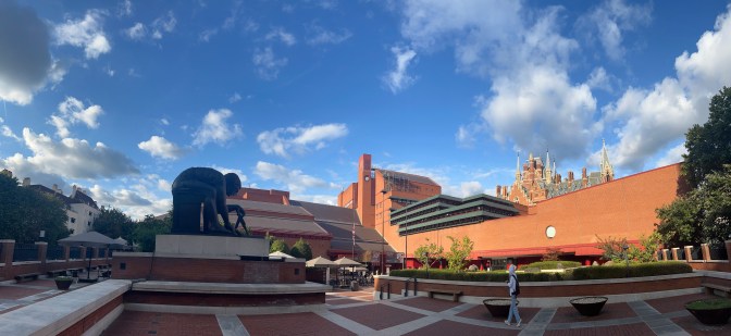 Now seriously, like the Tate Britain (which I did manage, even if by brute force or will perhaps is better stated, to make it finally), the British Library is very high on my list to go inside. I had completely forgotten about it on this trip though and when I walked by and found the front gate open but entering the courtyard to find people streaming out of the Library- I realized it was just past 5pm, the closing time. If the courtyard was any indication- the Library itself will certainly be worth the visit.
