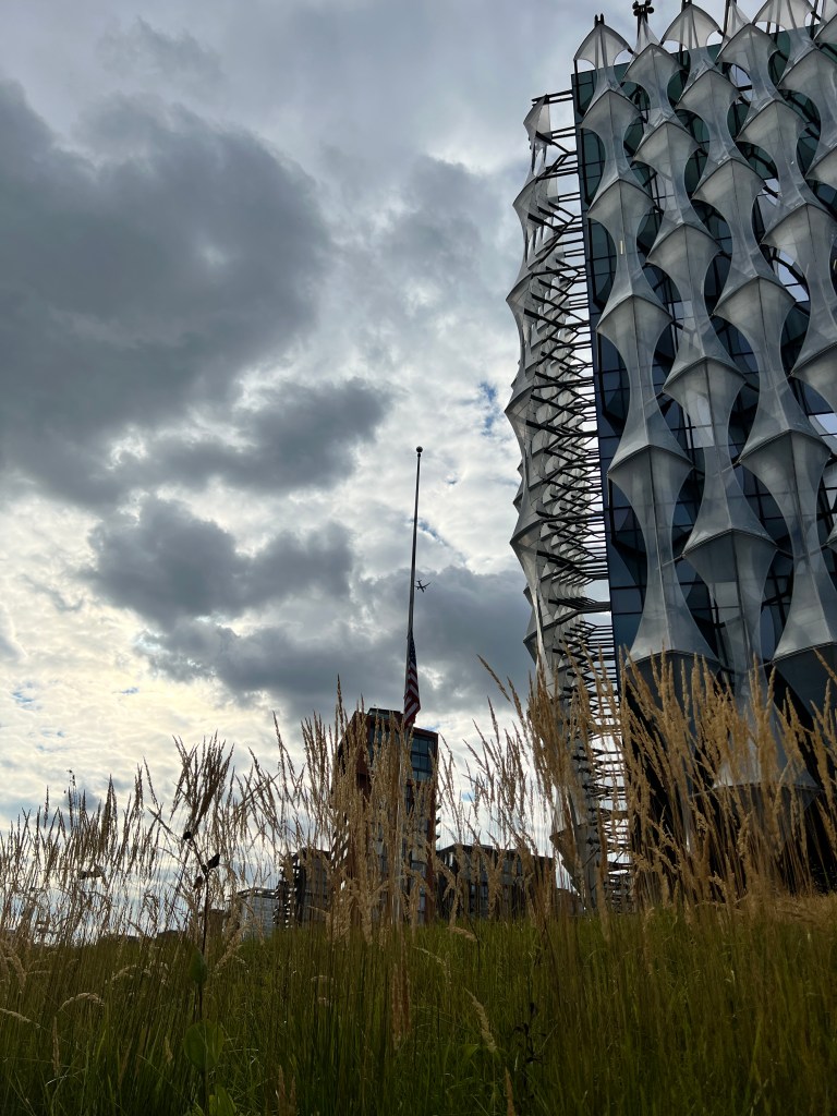 Flag at half mast to pay respects for Queen Elizabeth’s passing. For the sake of the photo, I took a few trying to get one with the flag blowing in the air- but honestly I’m too lazy and I was happier to have a mild than a stronger wind that would grace me with a better photo.