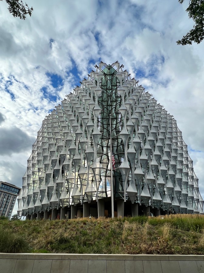Second- what is the cut out at the top corner of the building all about? This building seems literally like a square box- what’s the function that driving that form? But “covers” can be deceiving as The Broad proved. I wonder if the inside is occupied by dull- but secure- office floors or maybe an opportunity has been taken for a deeper reflective statement about state of affairs through the design. All that being said- I hope I never make it inside- a rare statement for me on this journey- because that probably means something not great has happened.