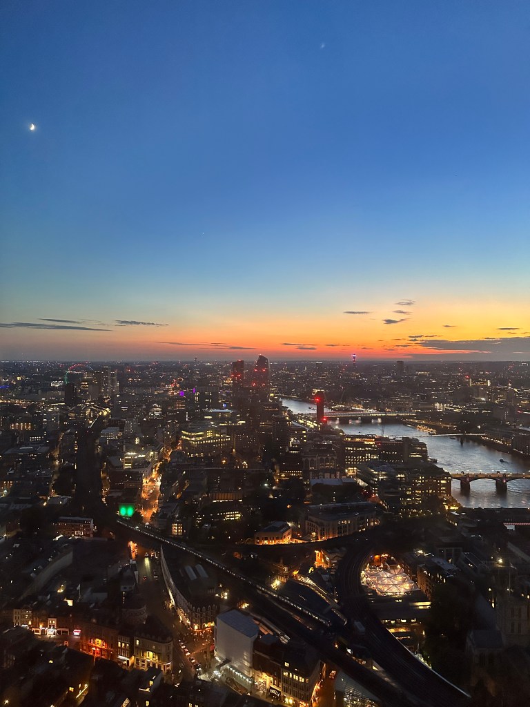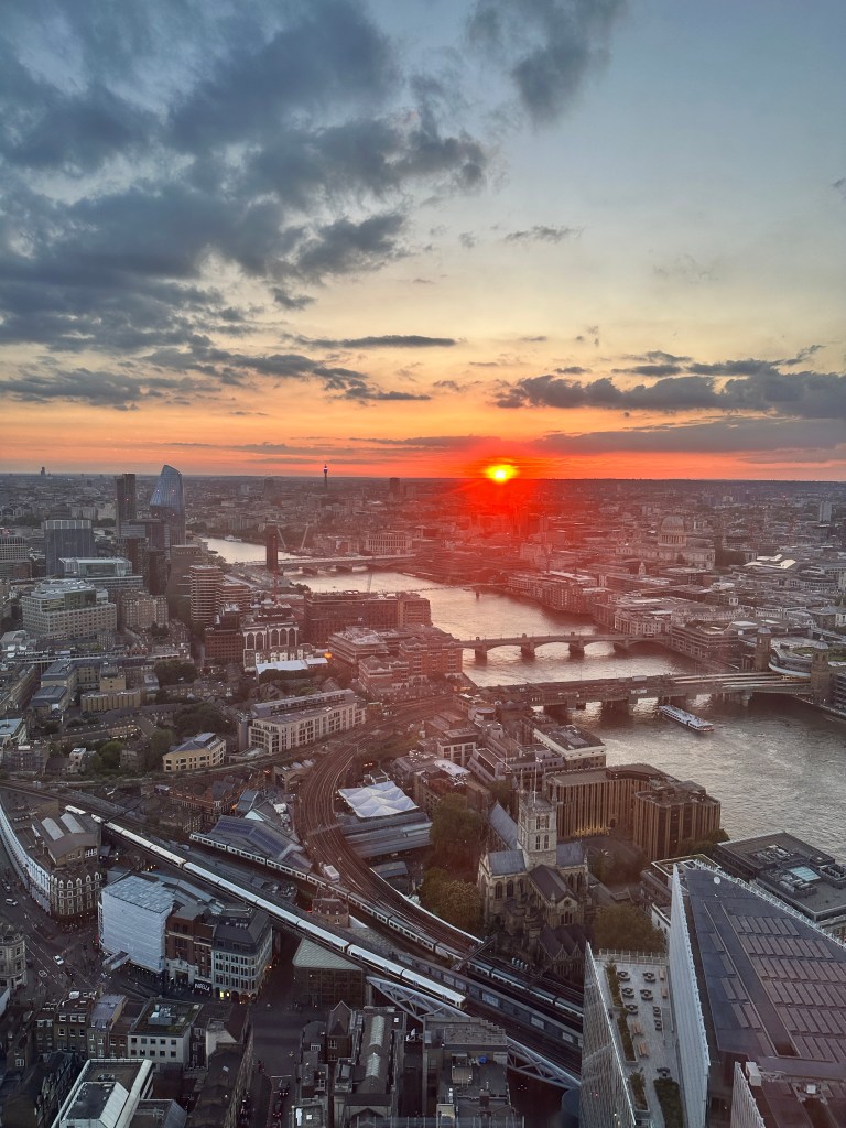 But in the end, it’s not the outside that counts- it’s the view of the city from the inside that matters. The Shangri-La Hotel, an exceptional stay for those that can in the Shard, has one of the most unique layouts of any hotel I’ve seen and the views, well, they are utterly breathtaking. Having tasked myself with the job of watching an entire sunset from the 42nd floor of the Shard, I can say that time is relative when you stop to just watch.