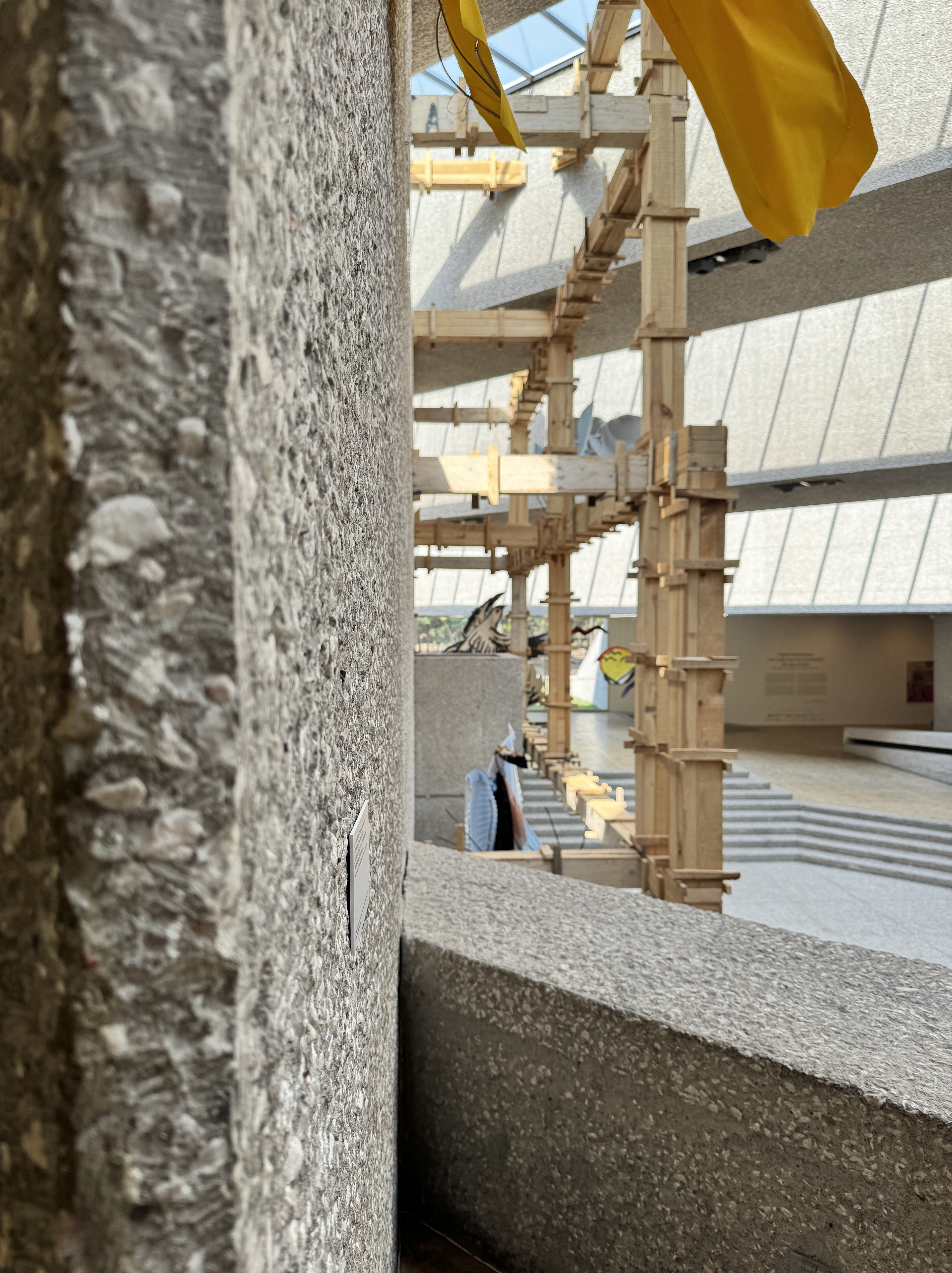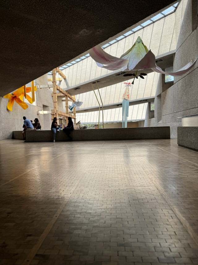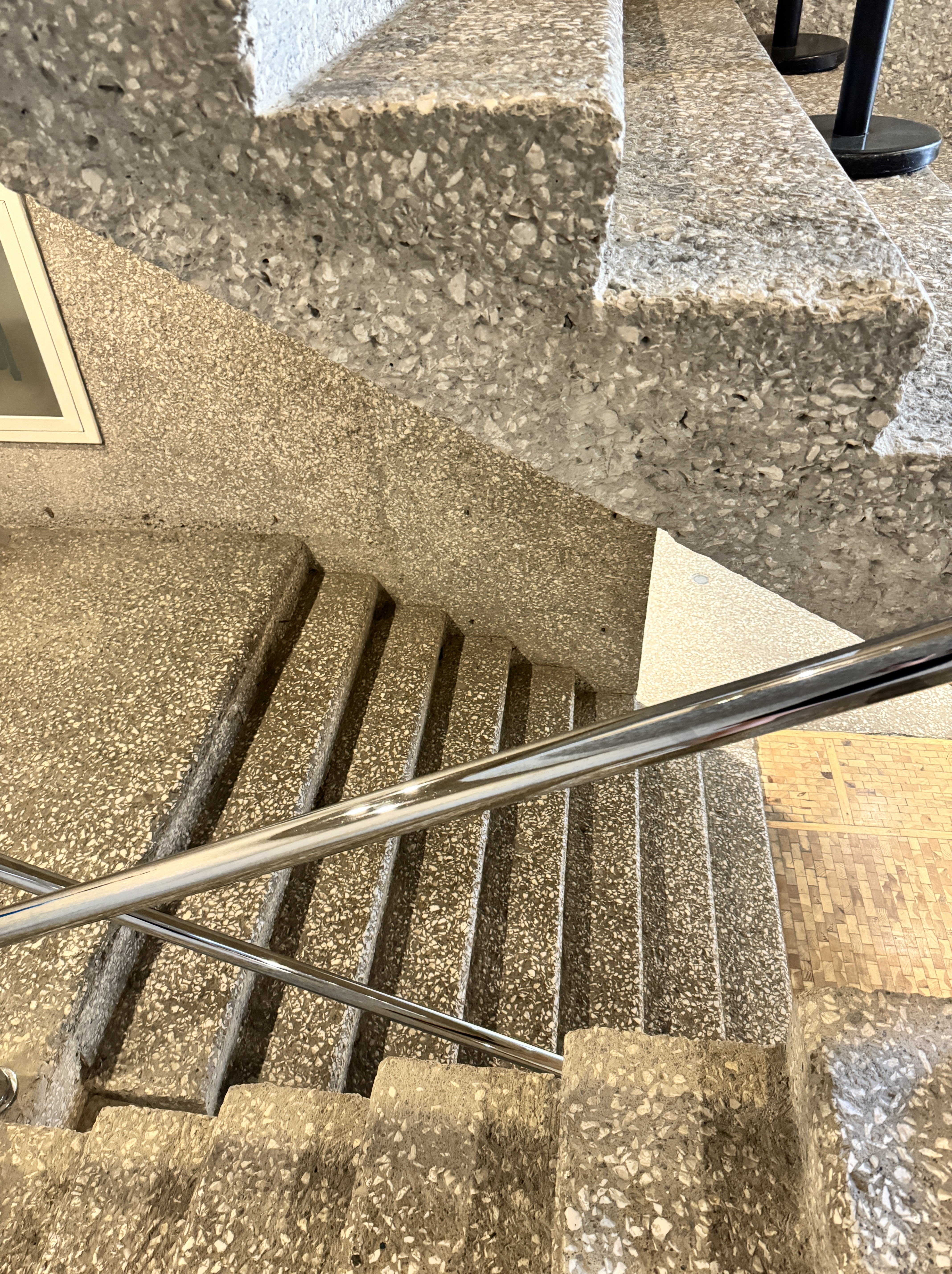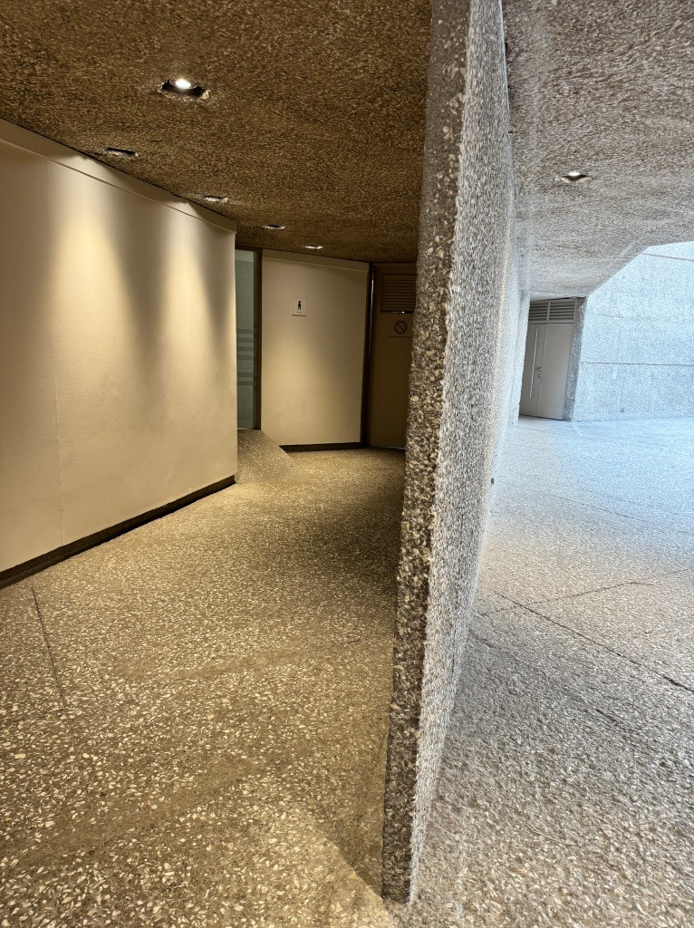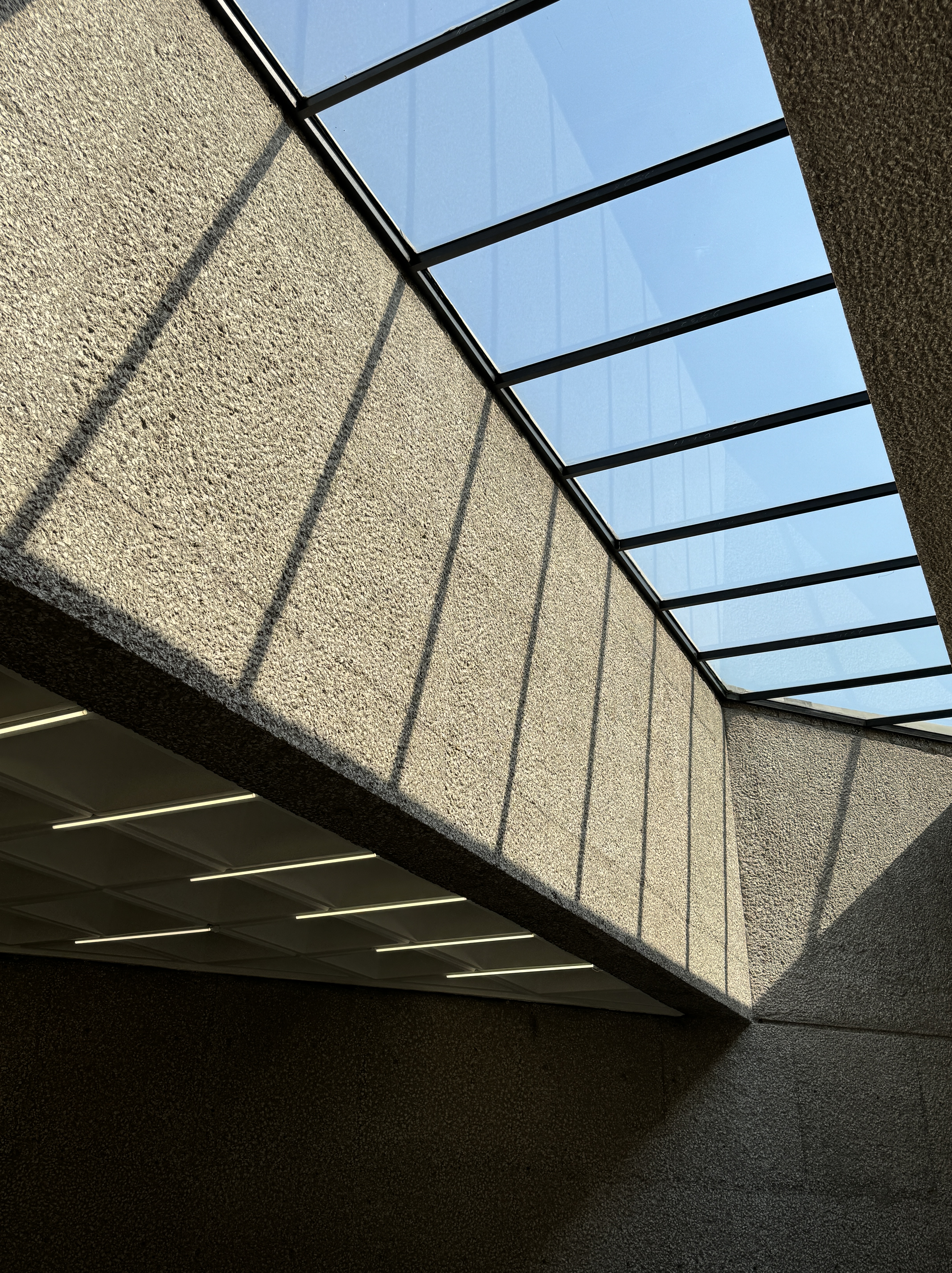 A true brutalist work of architecture (a nice follow up after the Brutalist exhibit I had just gone to)- the building shines as an expression of the technology of concrete in it’s more minimalist forms- the thin vertical planes as a wall, the cantilevered slabs of stairs. What I appreciated most was three fold. First was actually the texture in the concrete itself- it helped to give a character to the building. Second was the open format of the building- there’s a large atrium with various offshoots of exhibition spaces that are interweaved together through large cutouts in the walls to see across spaces. In fact, not sure I really encountered a door. Third was the amount of light in the spaces as a result of latter. These combined together created a lightness in experience of the concrete construction, which so often with brutalist buildings can feel heavy and grounded instead.