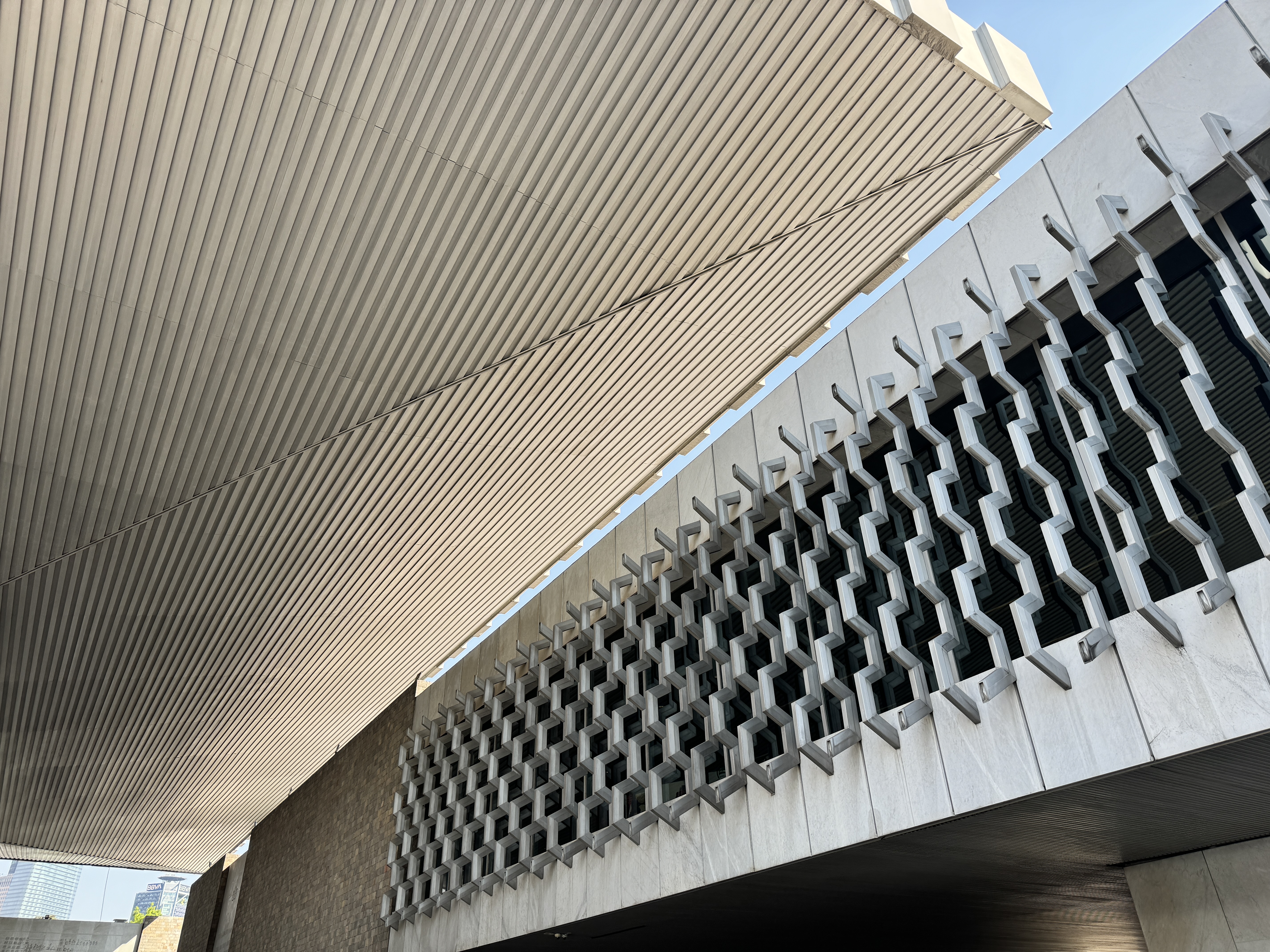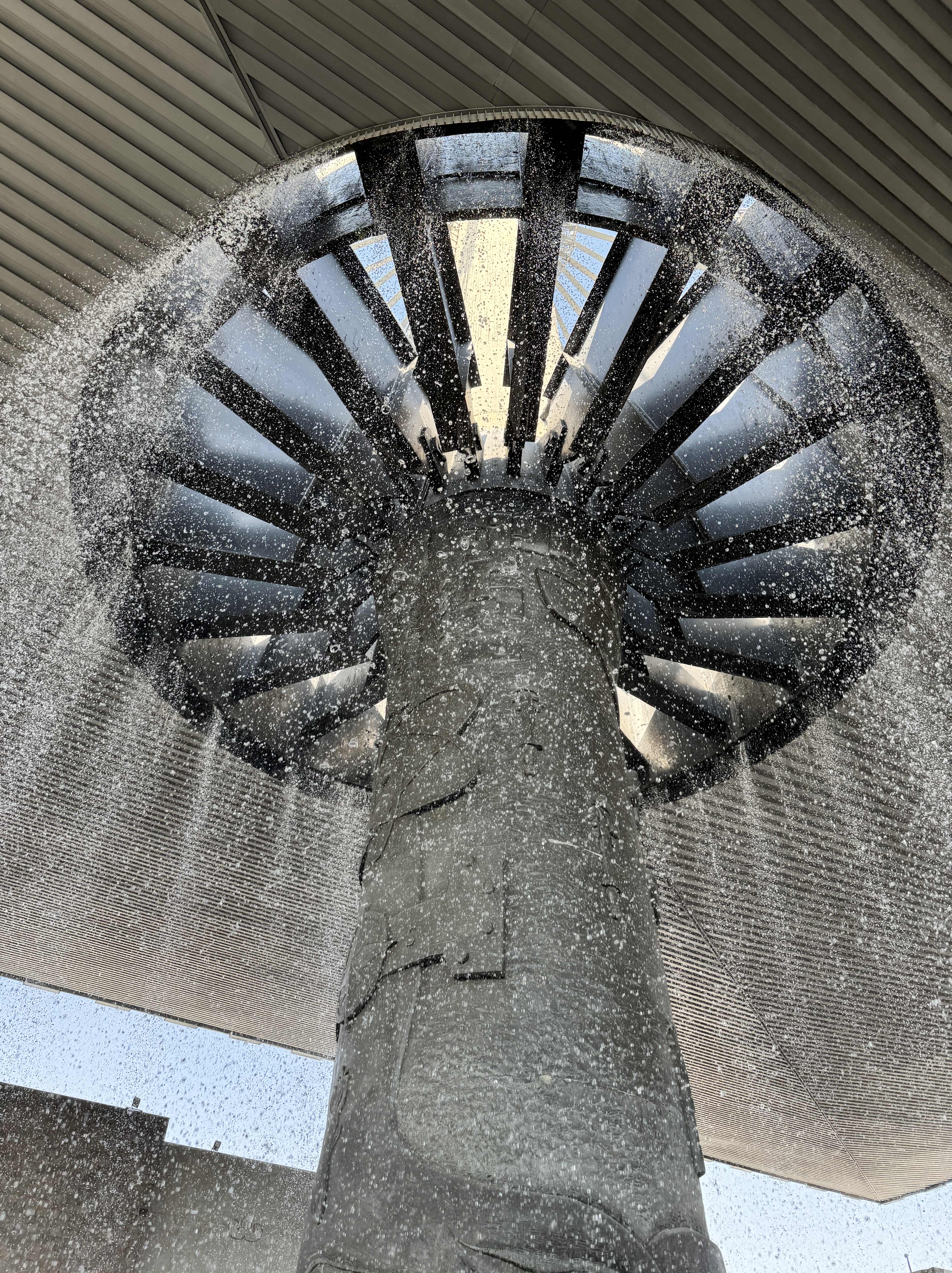 What I needed was a break- a place to sit, stretch and digest subconsciouly how impressed upon I was about the quality of the built world of this city. What I found was a spiritual moment sitting by this sculpture- where I felt I was in a church more than a museum. The sound and the power of the water falling down, the gift of the particles of water traveling through the air – a feeling of being so small in the scale of something so gravity defying. The contrast of this overhead plane being held up into the sky, while the water pouring down towards the ground and somehow all being served by a singular column in the middle. I experienced the forces of nature playing with and against each other all at once- the engagement across so many of the senses at once, in the middle of a massive city- to create that kind of connection to “nature” through our constructed world- it’s one of a kind.