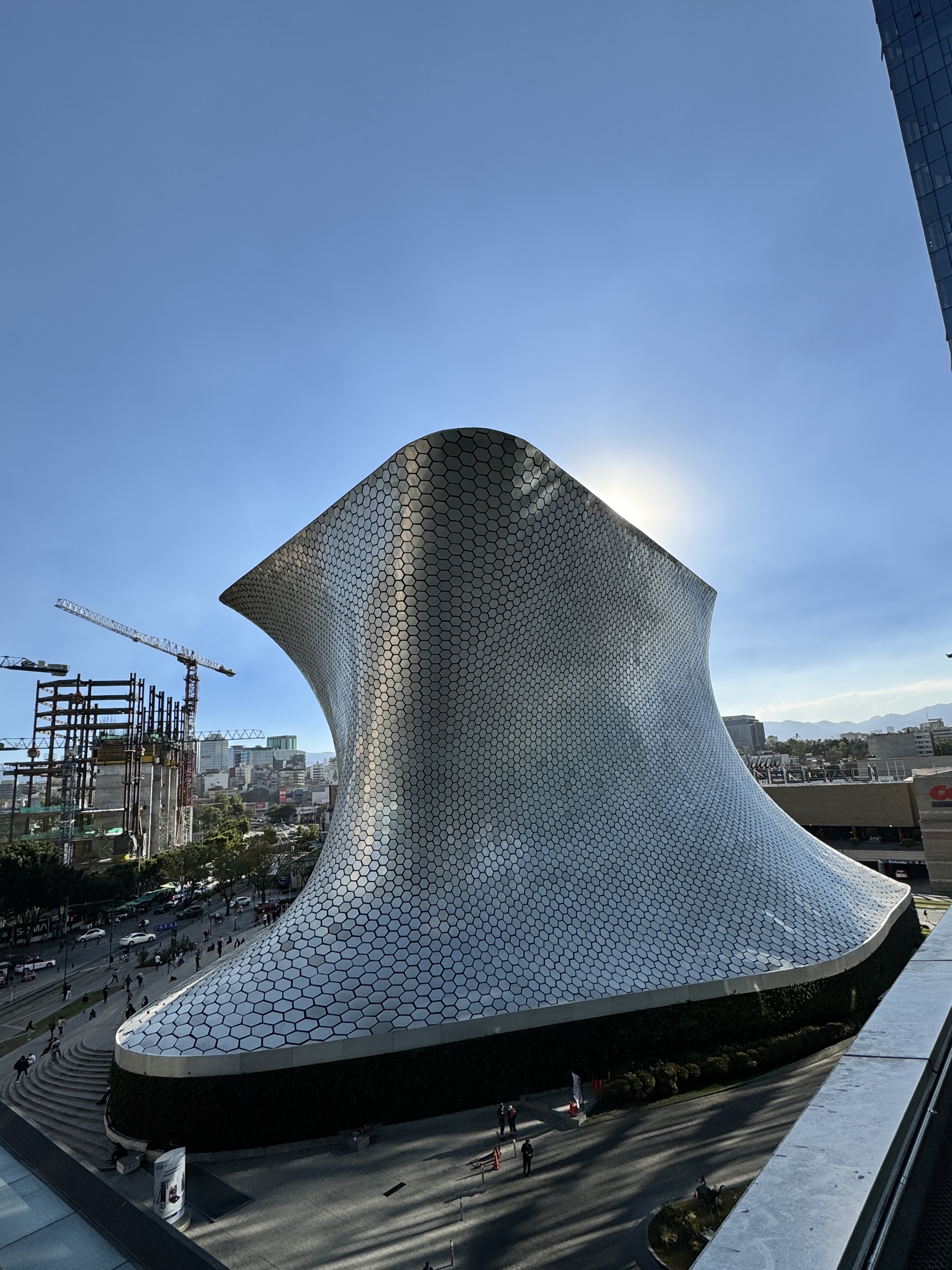 Great exterior photo from the upstairs patio of Loma Linda (food was okay, but great reprieve from the afternoon heat and a very very long day prior- and of course this view). I love the contrast of the new construction in the background against the cleanly finished sweeping organic silouette of the Soumaya. I do not think I have ever been to a place this sculptural before. Can a building be that compelling on the inside with no windows from the outside?