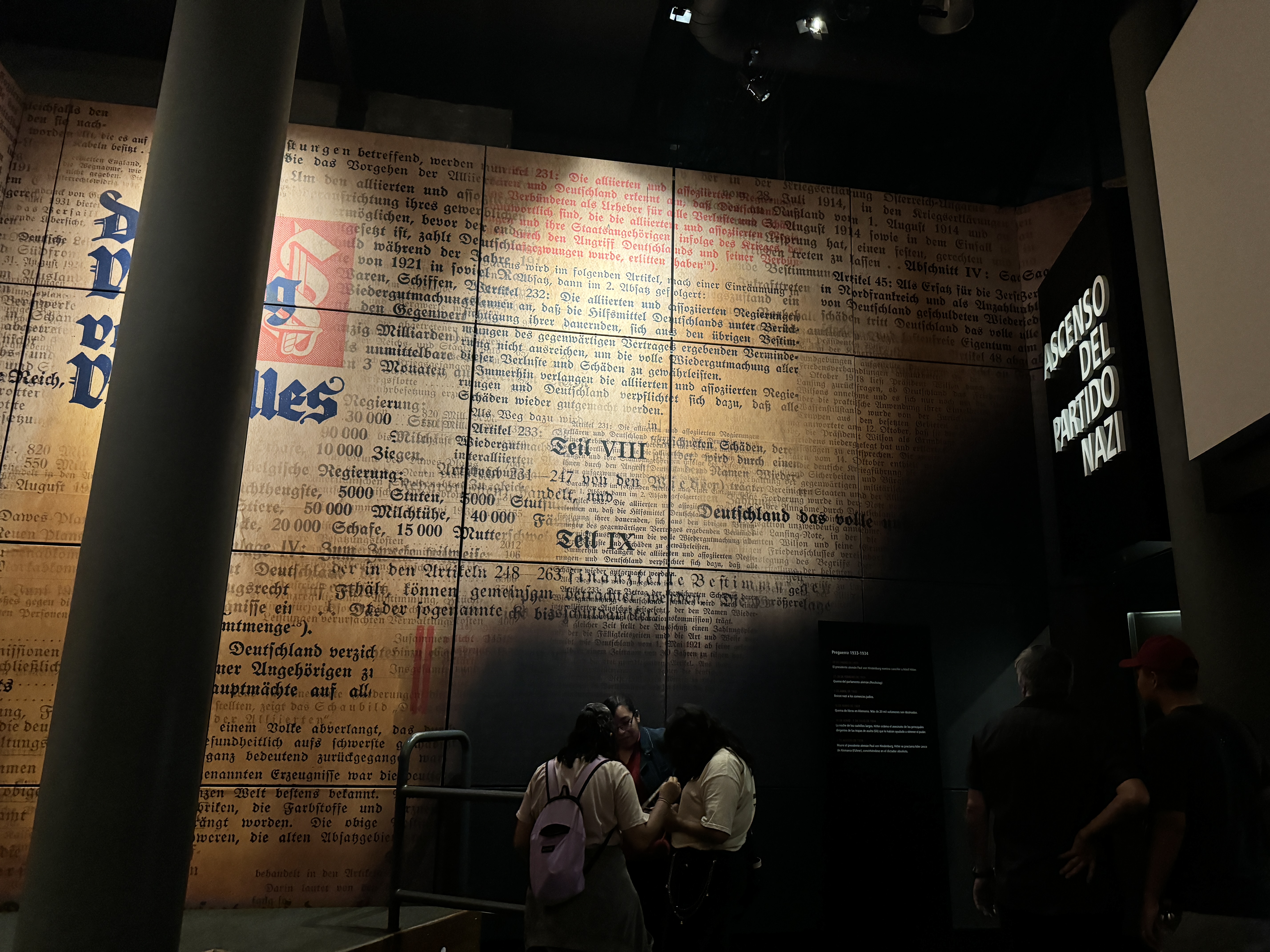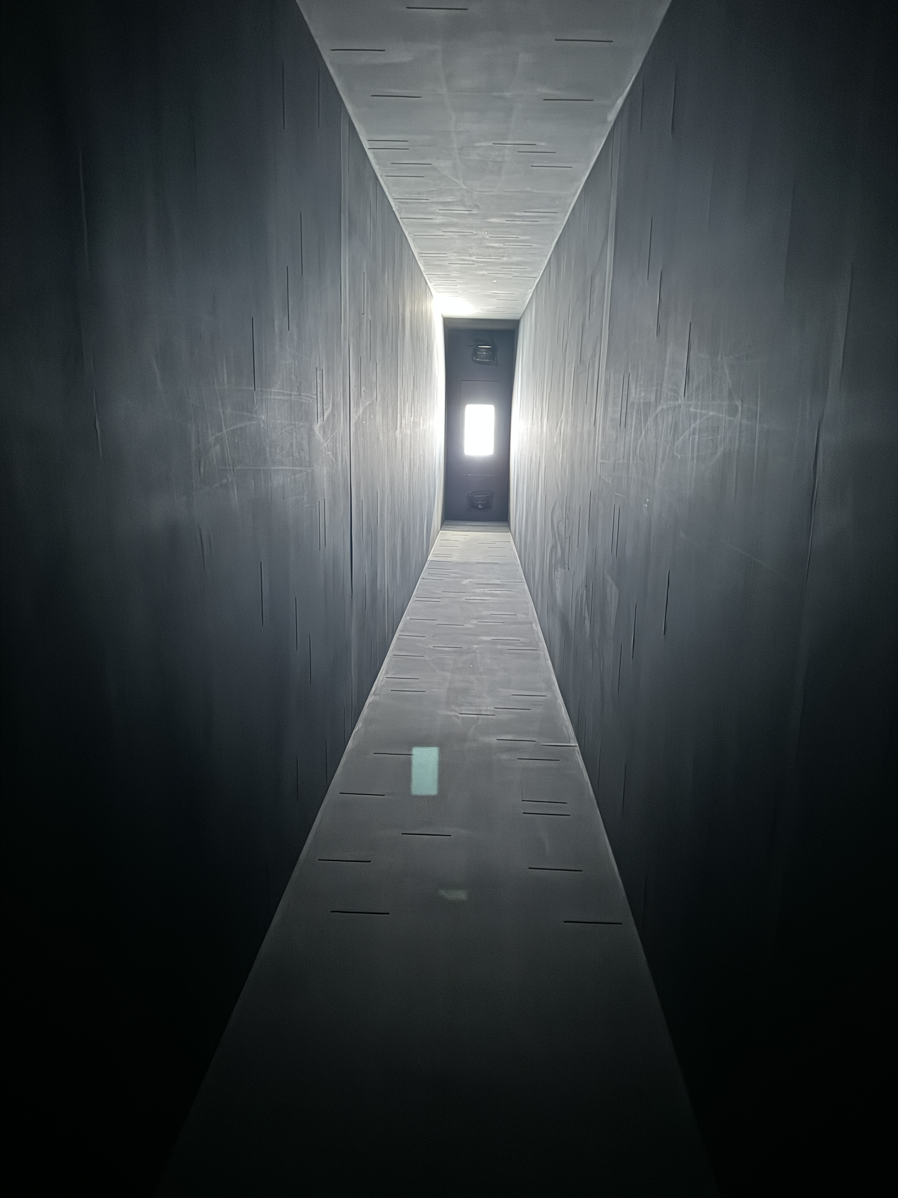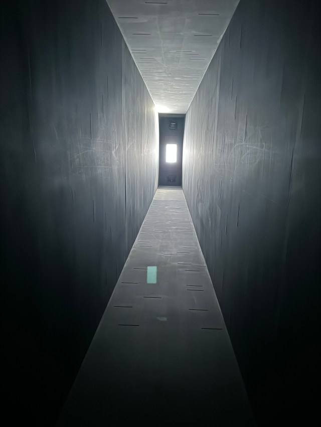 I was overwhelmed by this space- I am still overwhelmed by this space. From a design standpoint- it was exceptional for it use of light (or lack there of), consolidation of intensive material into condensed spaces, and sound- a constant white noise of disturbing dialogue and rhetoric. I felt as though I too was being squeezed into a line with others to go somewhere I didn’t know where, but it wasn’t a good feeling. The navigation winding and convoluted- the confusion and concern only increased.