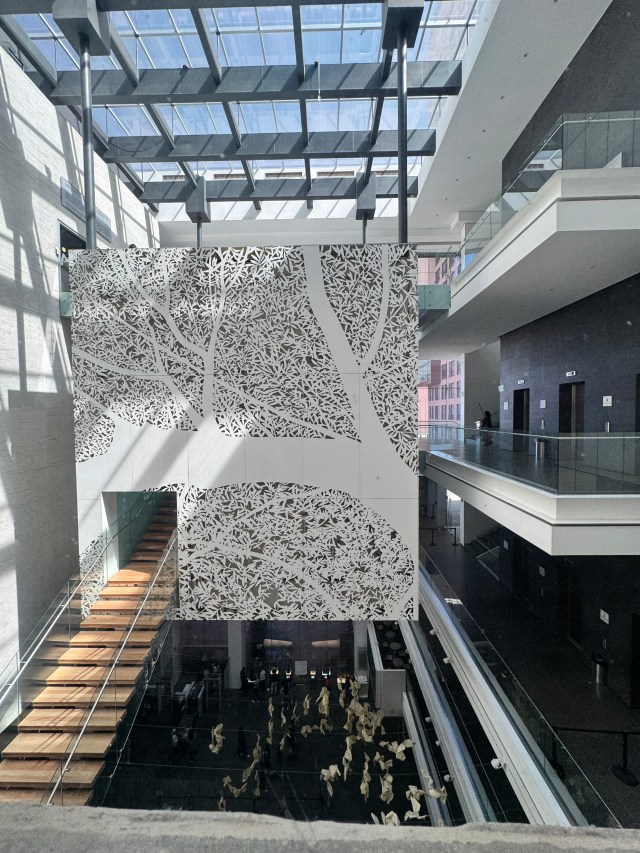 I learned that the hanging sculpture is a memorial to the children who died in genocide.