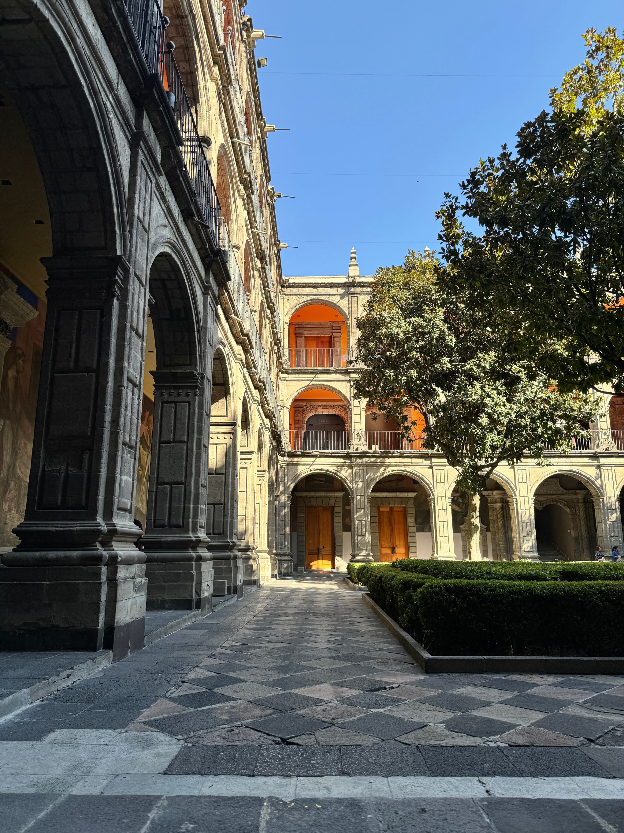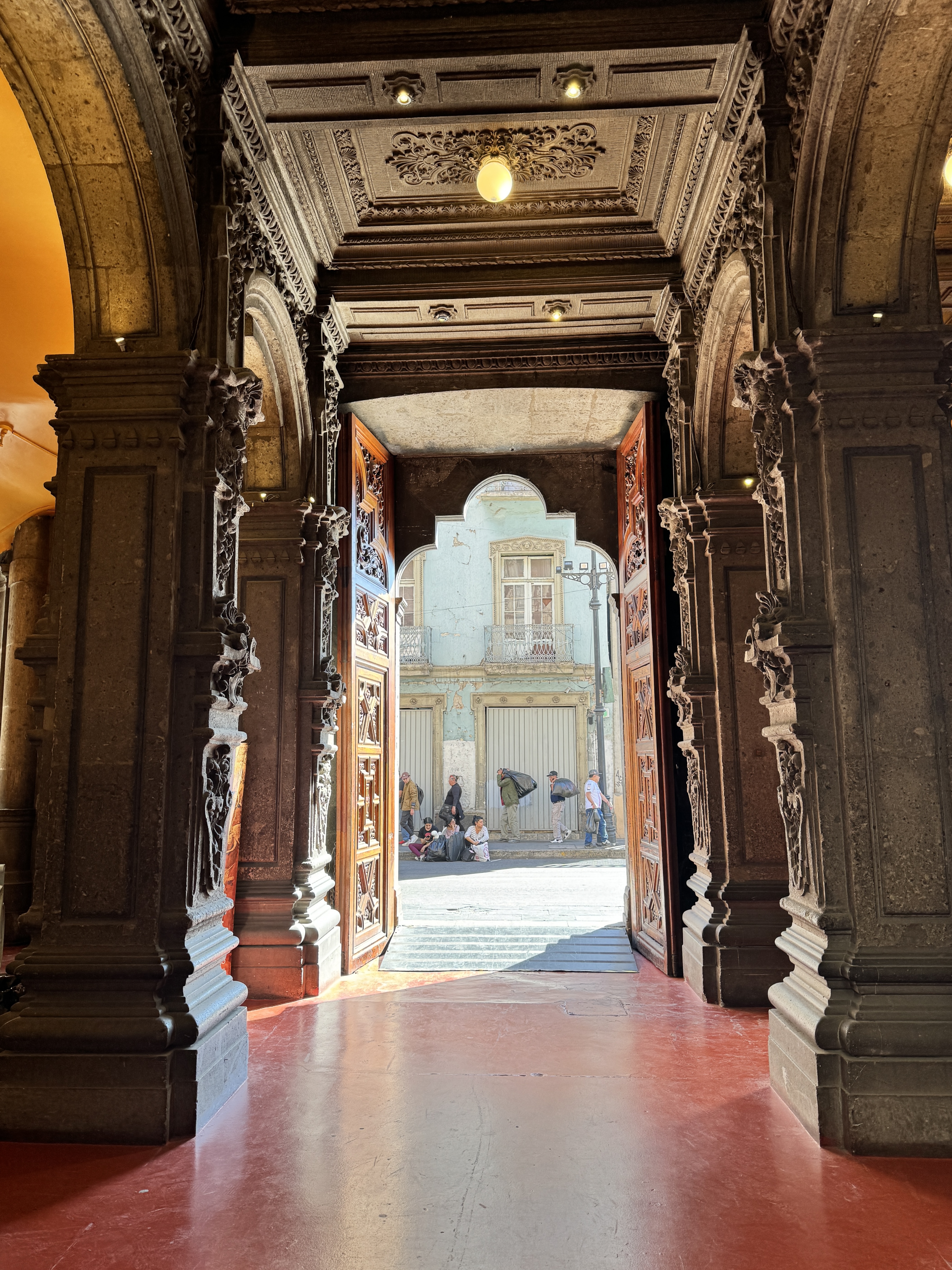 A series of stunning courtyards, there’s almost no one visiting on this day. No one taking selfies (unlike at MUNAL where I made a brief stop), no one to get out of the way of. The building is beautifully preserved- the detail of the stonework and the woodwork of the doors- Mexico City is abound with history.