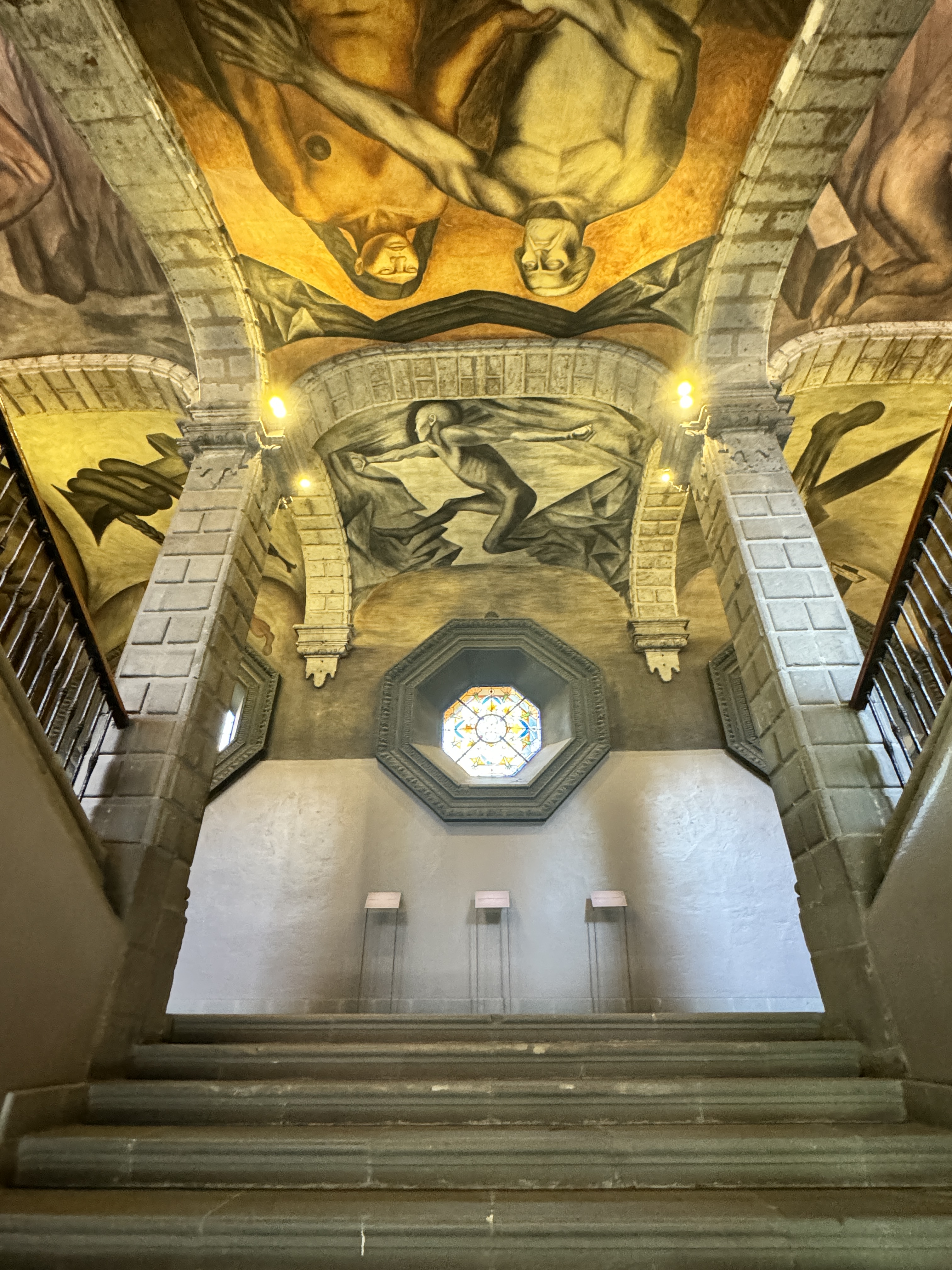Traversing the staircases, this series of murals, of which I think this building is likely more famous for now- was probably some of the best artwork that I saw on this trip. The modern art fair Zona Maco was great but on a return to Mexico City, I would spend more time digging into the exhibits displaying this age of work.