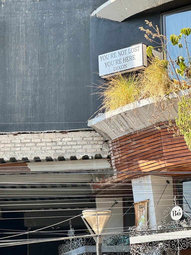 Polanco neighborhood. Aúna Café and next door the cycling shop The Service Course México both worth the stop. “You’re not lost, you’re here.”