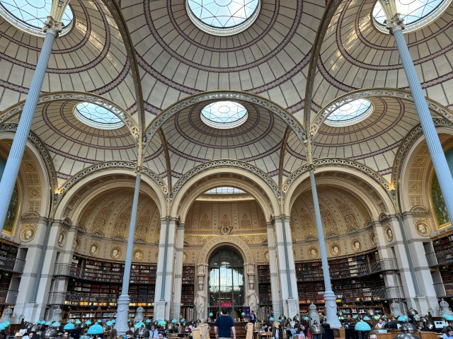 It is rare to be inside a space so grand- maybe a train or airport terminal or stadium- that’s how huge these spaces were. But unlike those, these of the Richelieu were quiet in a church like way- where study is a kind of devotion.