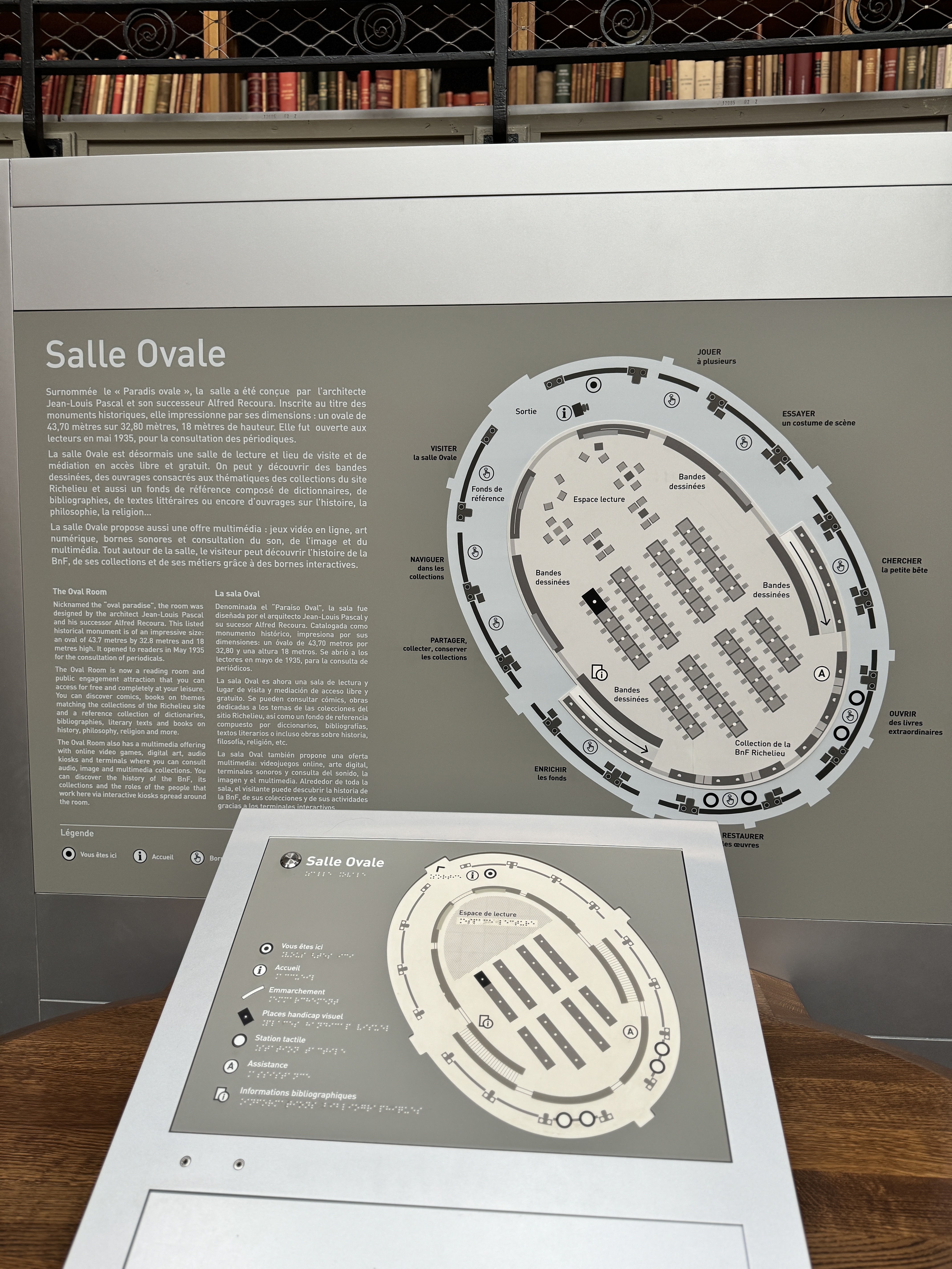 Because it was an inbetween- and a busy well used one at that- I didn’t dare walk into the center of any of the halls, but wish I would have for the one that was open to the public (I think- the Salle Ovale). How odd to think about standing in the middle, looking around at the 4 stories of books – it is perhaps only rivaled by the library in Mexico City where the human has the ability to be surrounded all at once in totality of the books. It’s a lot of words.