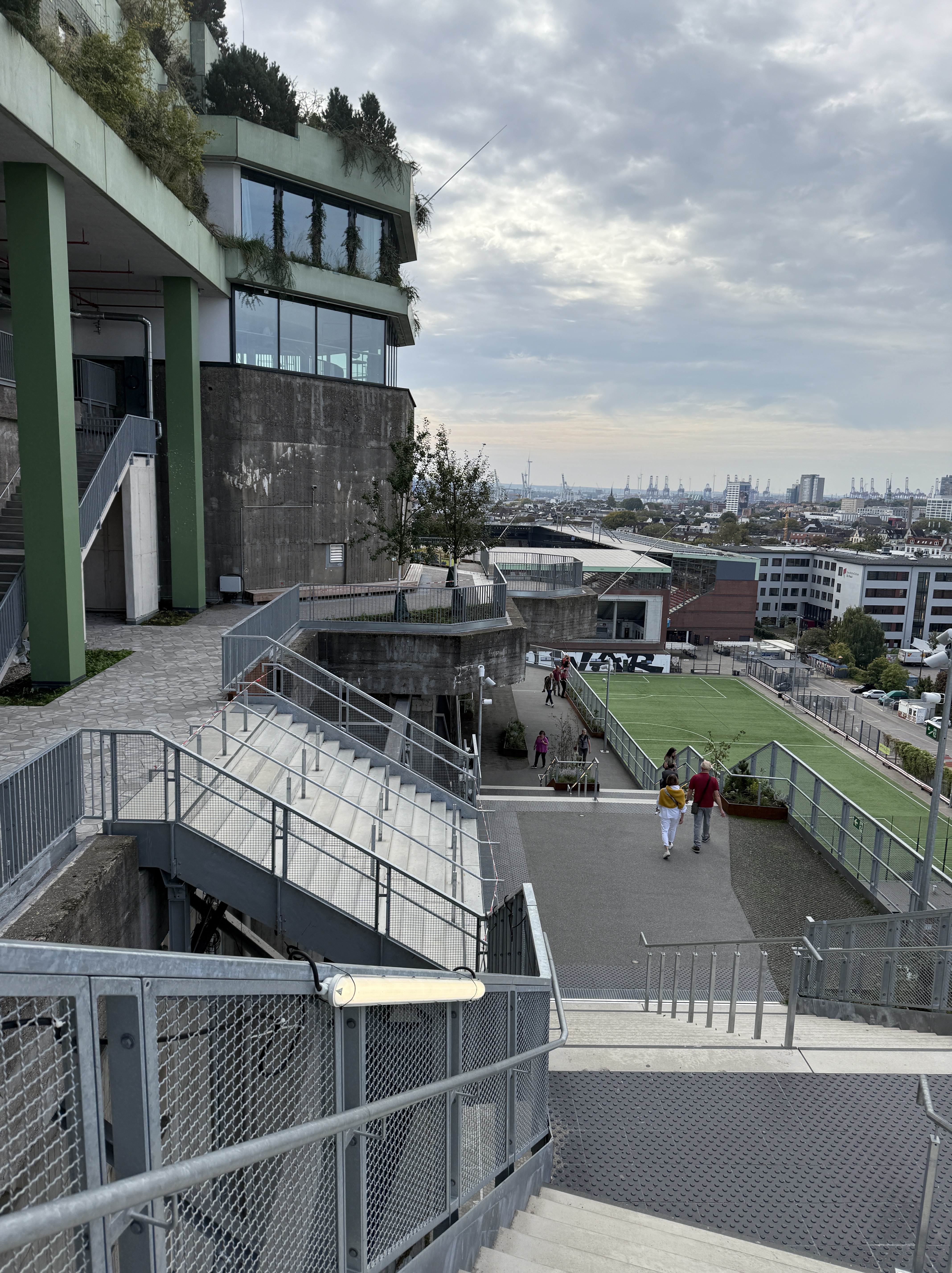We take the wounded and try to heal it- it is in our human nature to suffer, but how can we find a way to live? The Green Bunker, one of two, is a wonderful addition to the many buildings that are finding new purpose for their built presence. It a great mash up of the character and culture of St. Pauli, contemporary green architecture and a memorial to a history that should not be forgotten.
