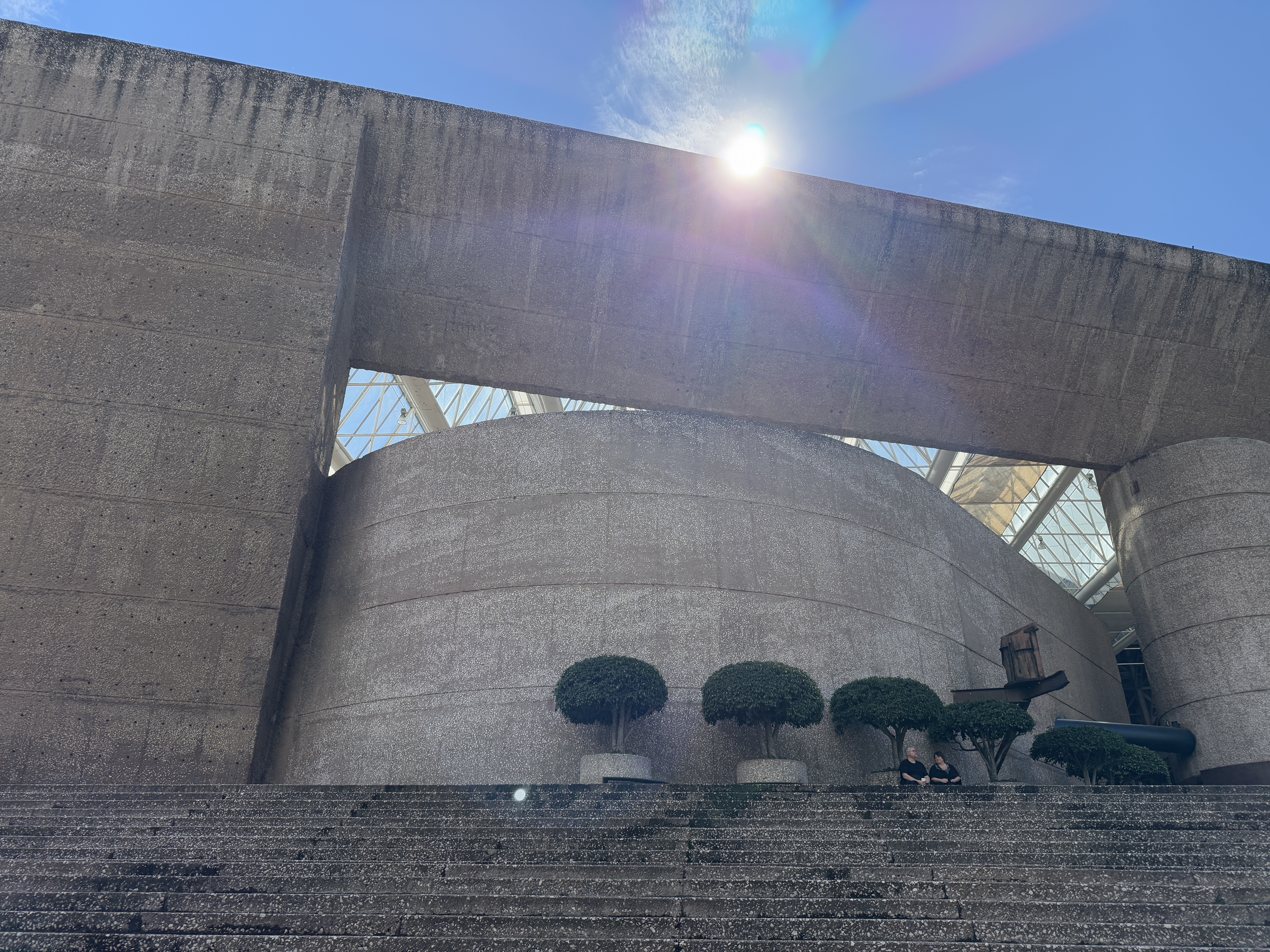 The building was on my initial list to go to in Mexico city and finally made it. It is very geometric as if taken shapes from a plan view and laid them on top of each other- only to offset them asymmetrically. But there’s also a levity to the sections where the shapes are also shifted vertically creating a sense of lightness to large unbroken planes of materials.