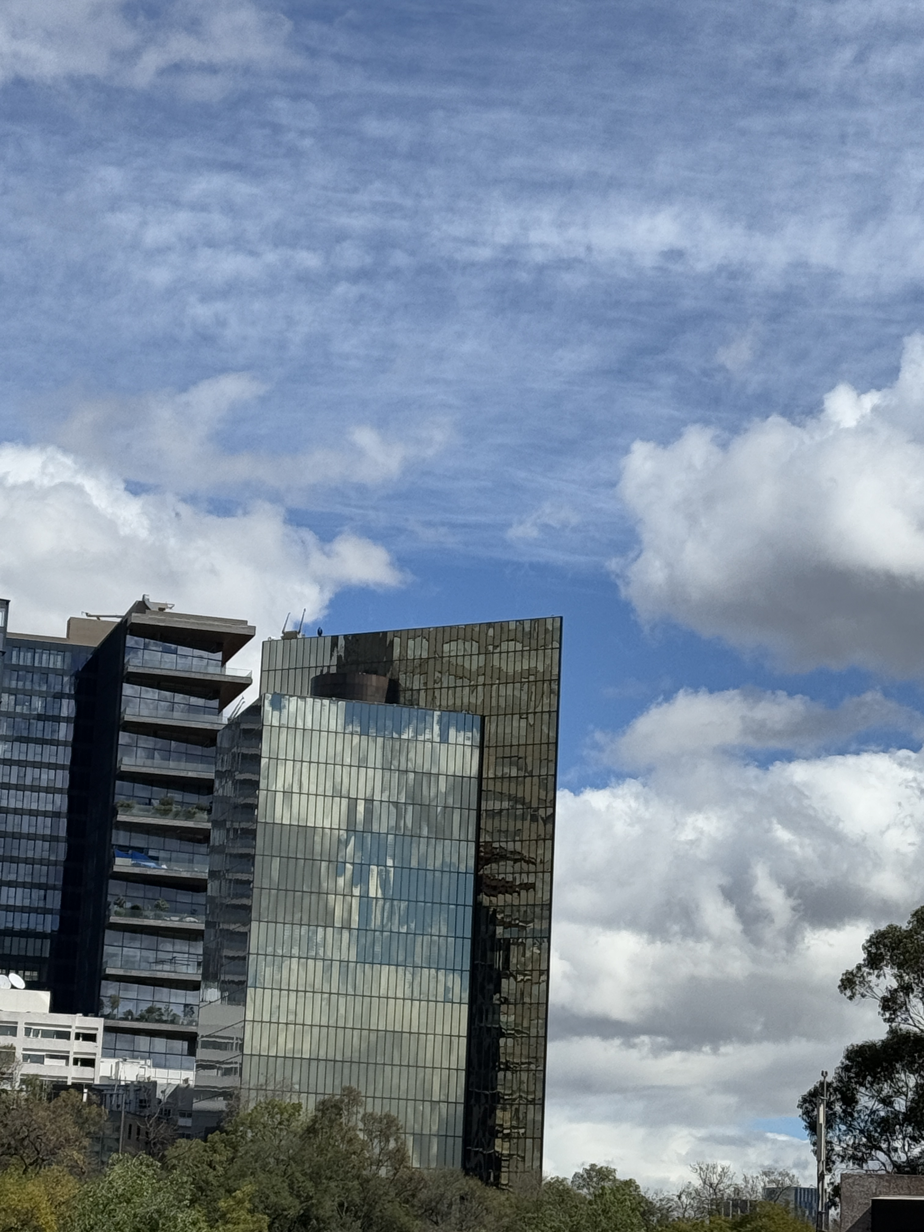 Second, I have to acknowledge the blessing of the beauty of this day. Literally a perfect day for a walk. See the clouds reflected in the mirrored windows on the building across the way – as if a reflection into the state of my mind. What luck in time and space I had on this day and may curiosity bring you to this walk where perhaps you too will find some meaning in the architecture of life.