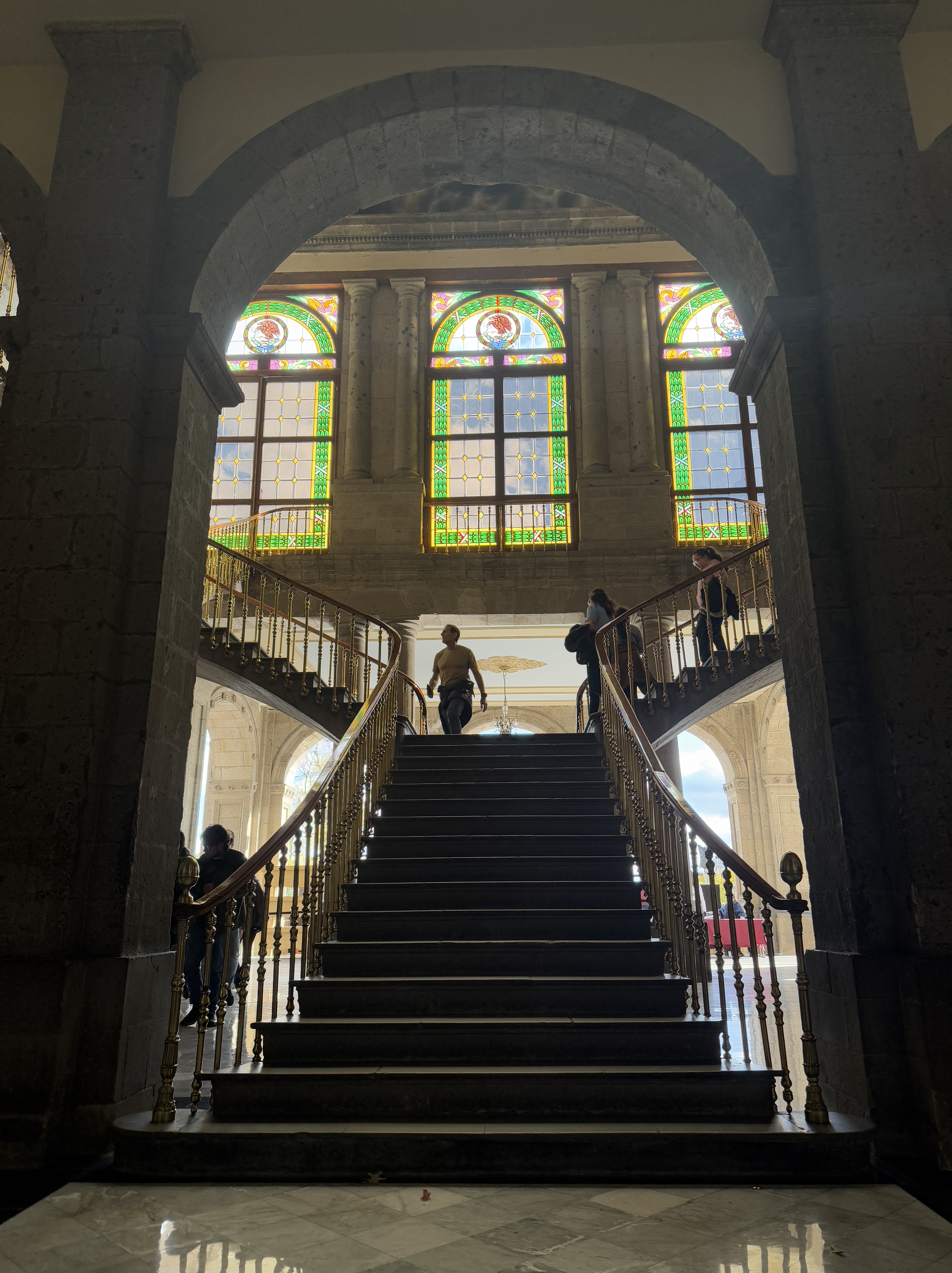 Another call out at this building is this Escher like staircase. Like a cross section of medieval and modern- this stair case stopped me in my tracks. Like full stop. The arch below the intersection of these stairs is someplace I’d like to sit and mediate for a while. There is quite a detailed history (see link in post later) on the phases of construction and what makes this staircase so confusing/ interesting is the lack of ornateness in it’s superficiality like the rest of the building and instead a conspicuous demonstration of engineering prowess.