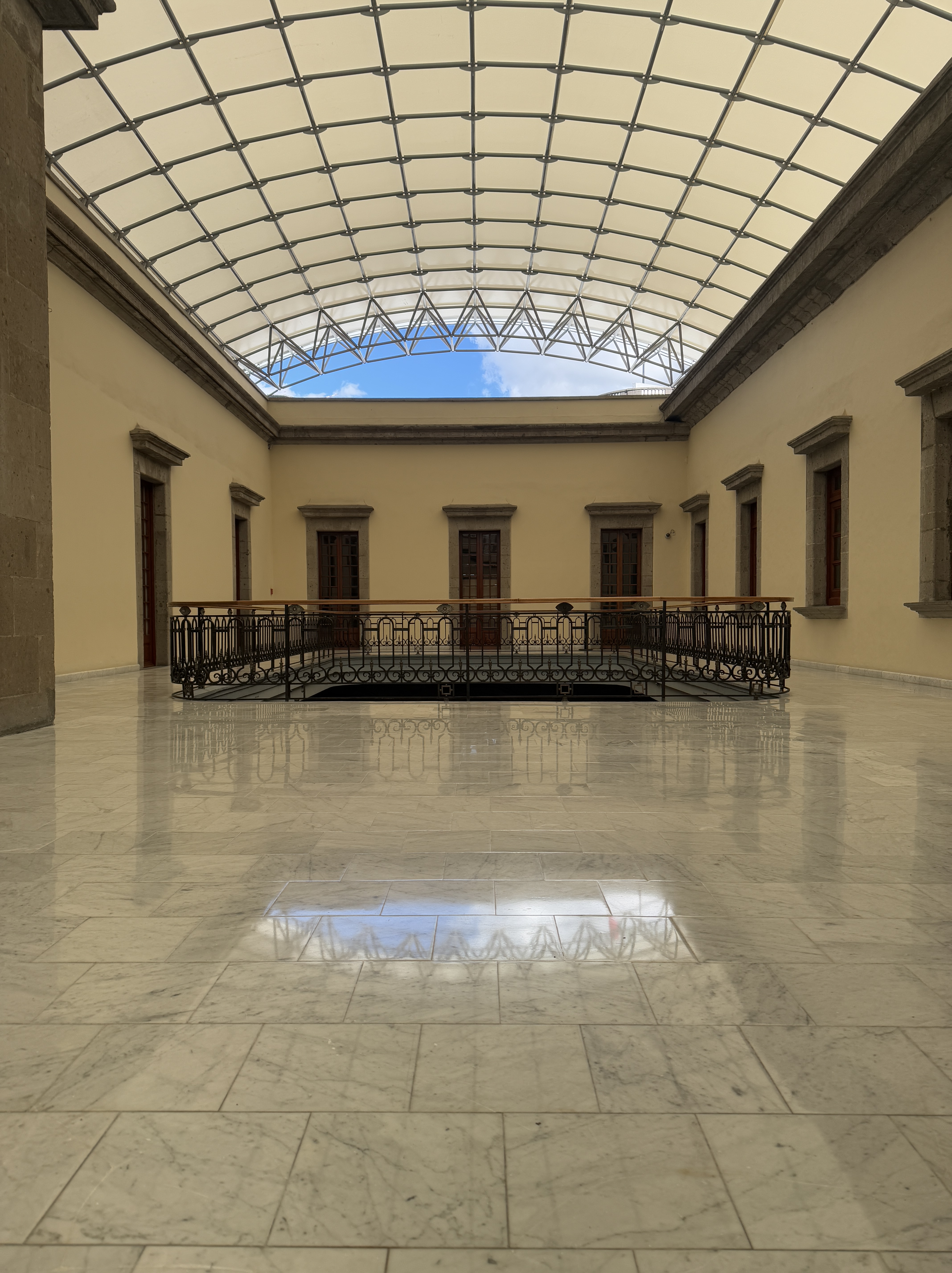 Walking being a measure of how we think then there can be nothing more electric than putting one foot in front of another where the sole (soul) of our bodies touches to the ground. And that surface matters- dirt, grass, gravel, asphalt, wood, stone- these materials all have properties of which we subliminally absorb their energy. The floors at the Chapultepec Castle are even more exceptional than at Hamburger Kunsthalle because they are on the exterior- the sheer expense of them is staggering. So many people here are taking selfies with the view of the city and no doubt I myself admired the view (especially of Torre Reforma)- but the plane in which we travel along in this world is the dimension that shines in this space.
