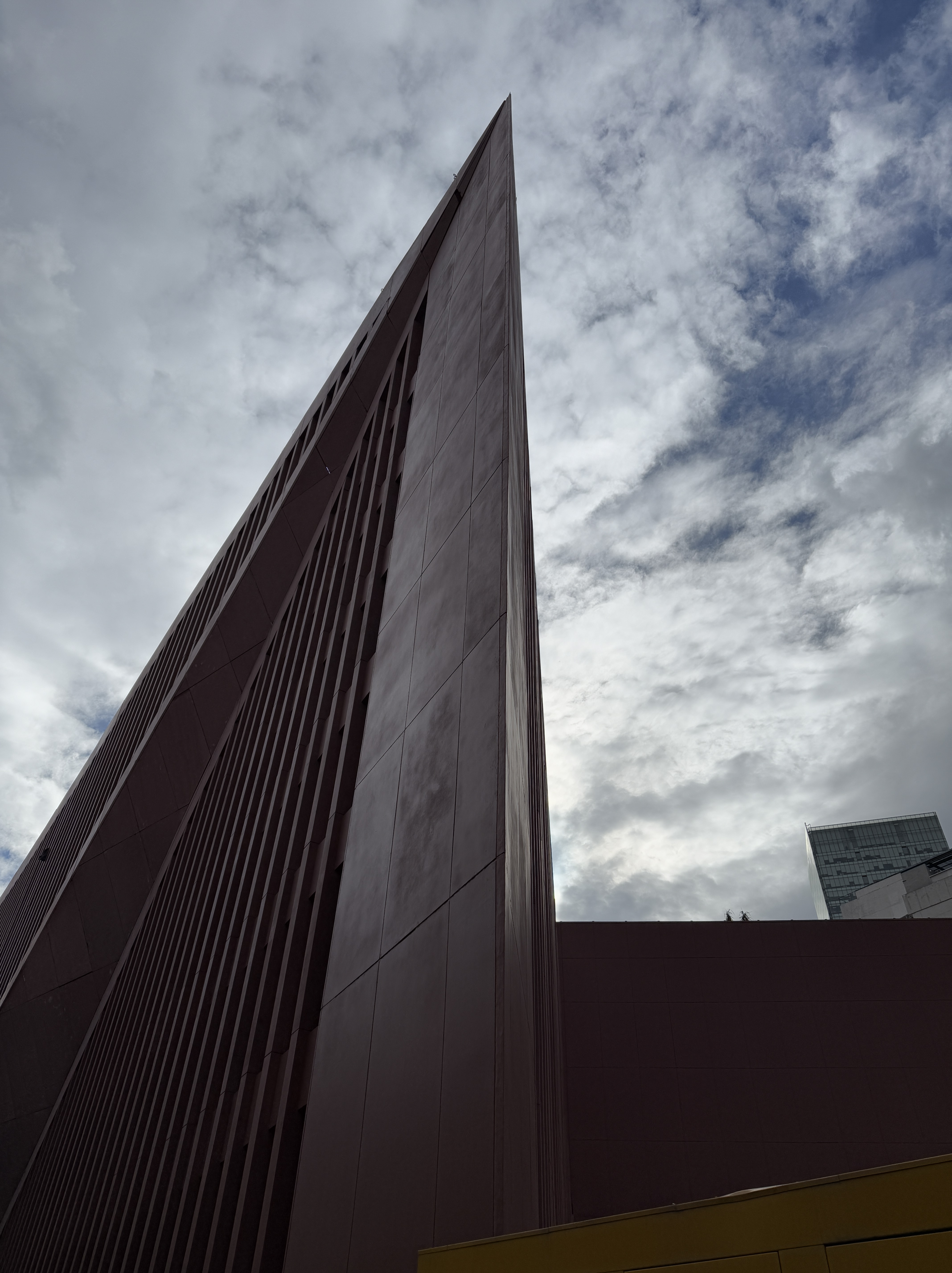 In researching for a possible claim, I had to leverage the satellite view to make sure I was going to get the right coordinates. This data exposed a geometric shape and varied lattice texture that reveals such depth and dynamism in its concept. Alive is this building- almost as if it could shift- the contrast and tension between the obtuse and acute angles all rising into the sky above.