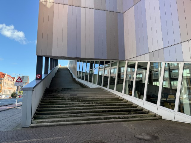 There were a few random buildings that I saw while in a vehicle around and about Alkmaar but wasn’t fast enough to grab a photo to capture the location- however, this Fire Station was one that I managed to catch. An easy walk right outside of the old town I has to satisfy my curiosity – I needed to know what those diagonal cuts in the side of the building were for. Turns out one side for stairs, one side for cars for the car park above. My pitch was both were used for fire trucks.