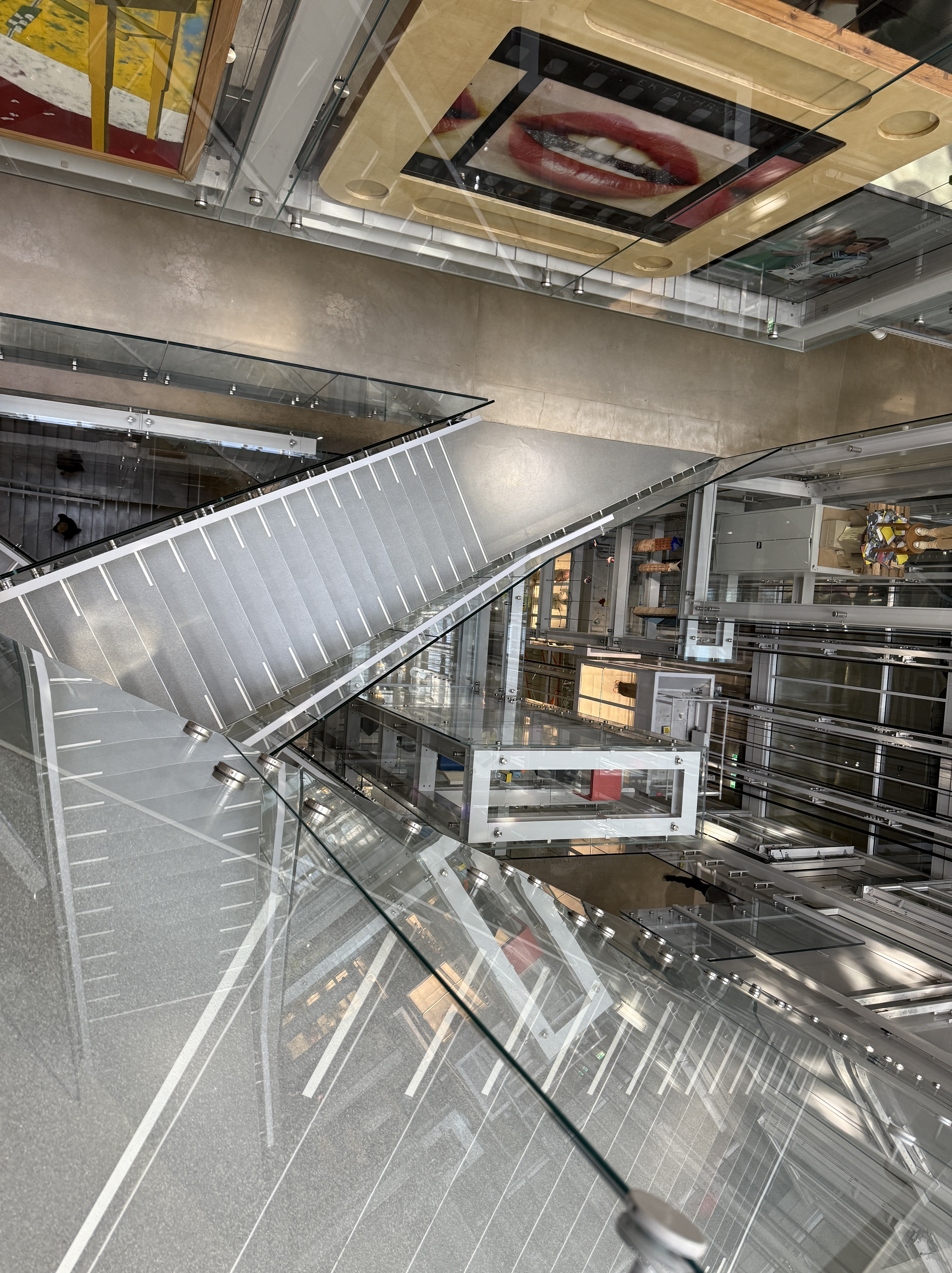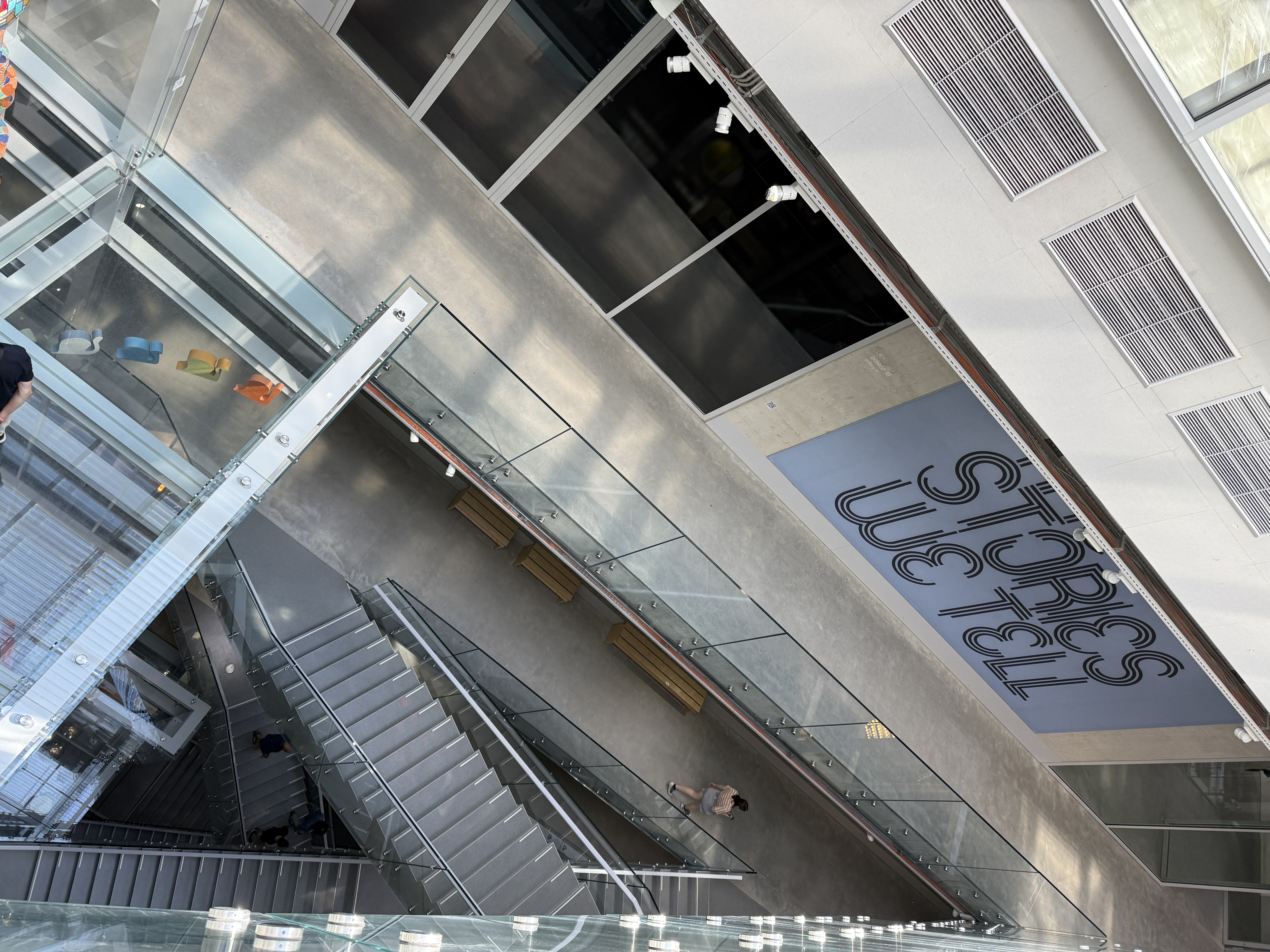I would recommend taking the elevator up. Maybe more than one if time allows as there are so many surprises along the way. The exhibition display in this central hall does such a great job to leverage all the space and there is quite a bit of fun at play here.