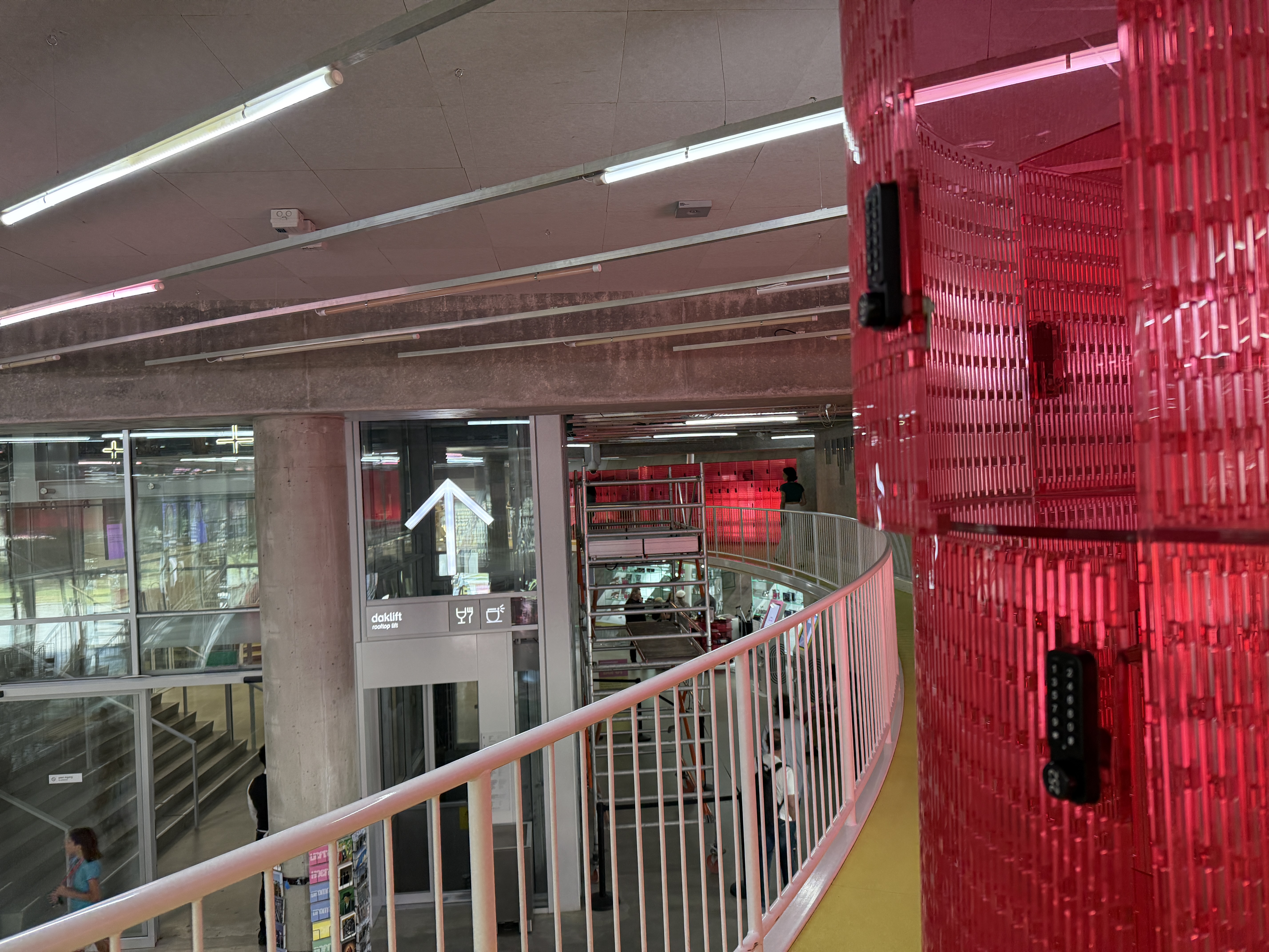 A fun pop of color, though still in the transparency theme with the pink lockers.