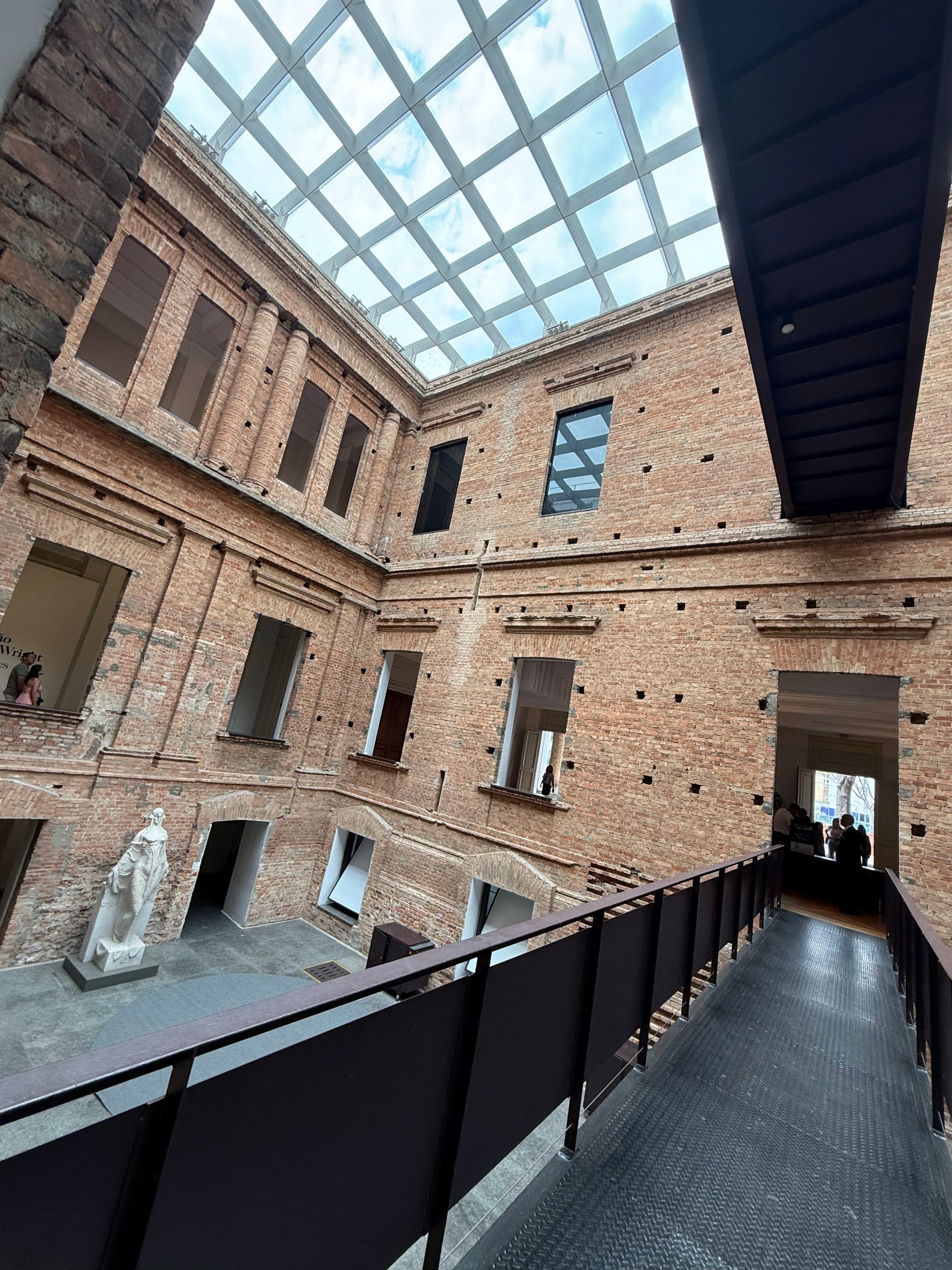 Mendes da Rocha gutted the interior, added metal walkways, and covered the internal courtyards with glass skylights, blending the old world with industrial modernity. He famously chose not to plaster the walls. He left the original red brick exposed, celebrating the “unfinished” nature of the building- often described as “industrial-chic” or “tectonic.”