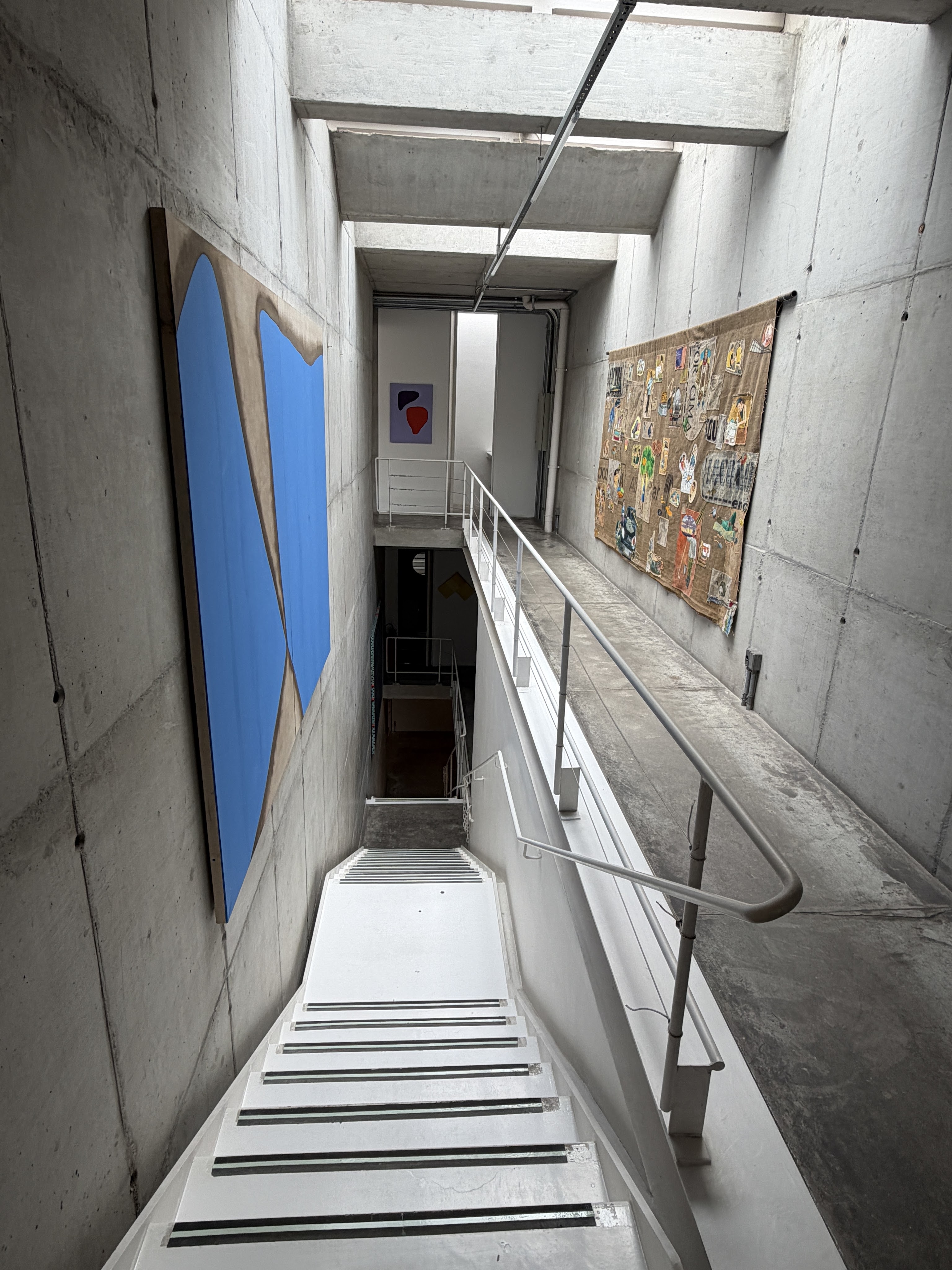 The building is pretty severely concrete from the outside but the inside doesn’t feel oppressive. The large swathes of concrete being raised in perfect symmetry (I did ask about this as its too perfect to be an accident of the where the lines form) do meet the style of this school where they want to combine both raw honesty of the material with technological feats of floating.