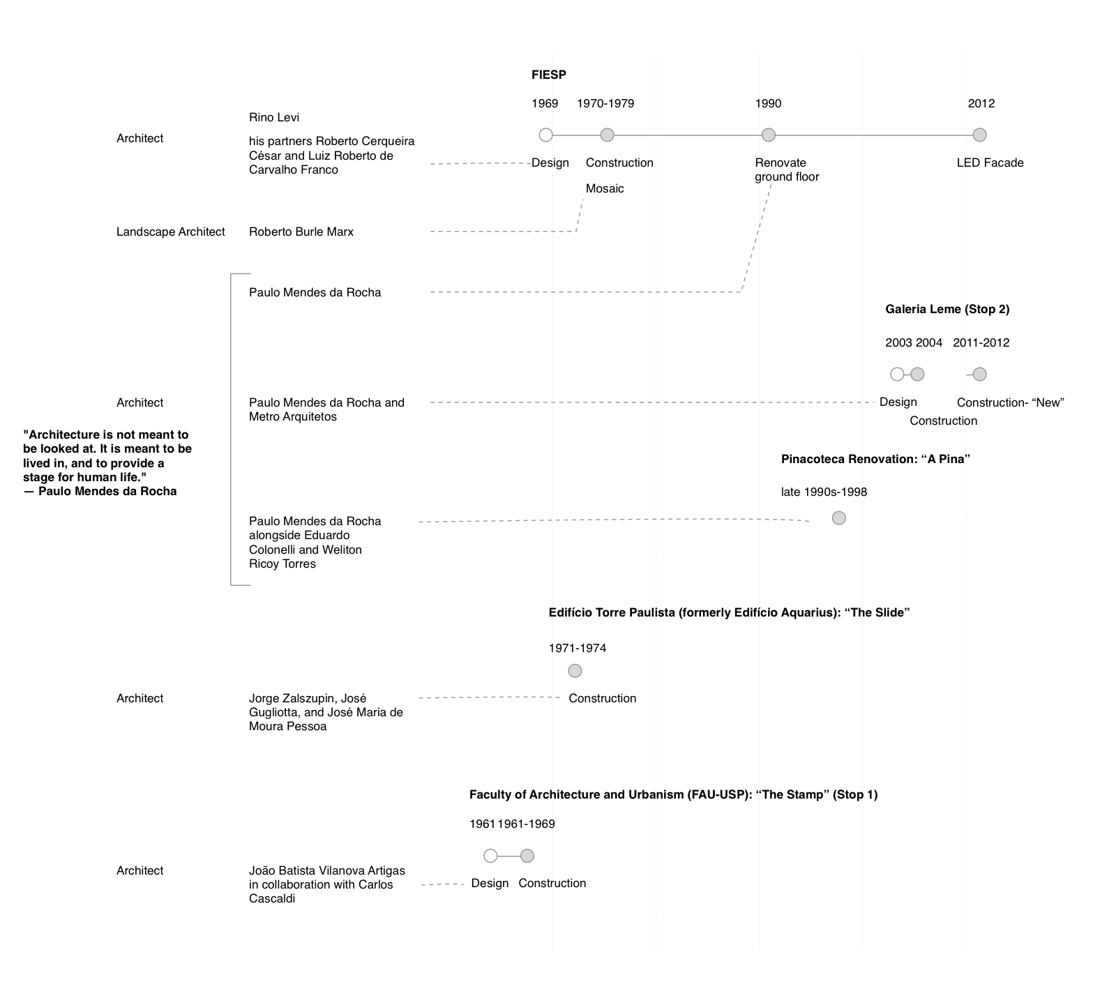 Mendes da Rocha, who I realize now is same architect as the one who prior to this project opened up the ground space at the FIESP building and renovated A Pina. Artigas seemed to be the thinker and Mendes da Rocha the ambassador. I wondered why Neimeyer is so much more recognizable as a name- the “Carioca” style of his always mentioned in contrast to the Paulista School- and my theory is that he built on the global stage, but the LLM tells me Mendes da Rocha was global. Prompting the LLM more directly to do my own comparison, indeed Neimeyer built in many countries besides Brazil while little work constructed for Mendes da Rocha internationally. Proceed with caution with the AI I tell you.